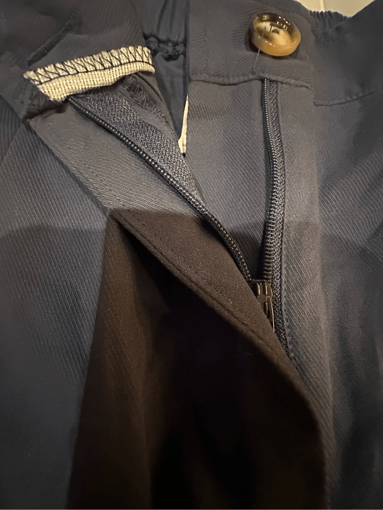 Mid Rise Button Zipper Side Pocket Casual Cotton Joggers in Moonlit Ocean Tag attached Winkles noted Mid waist Back elastic waistband Zipper Two side pockets 100% cotton Fabric does not have any stretch in this style Halara size guide shown in the last image There should be no stains or damage to the garment unless otherwise noted. Original packaging shows signs of handling. Garment may show slight signs of being tried on.