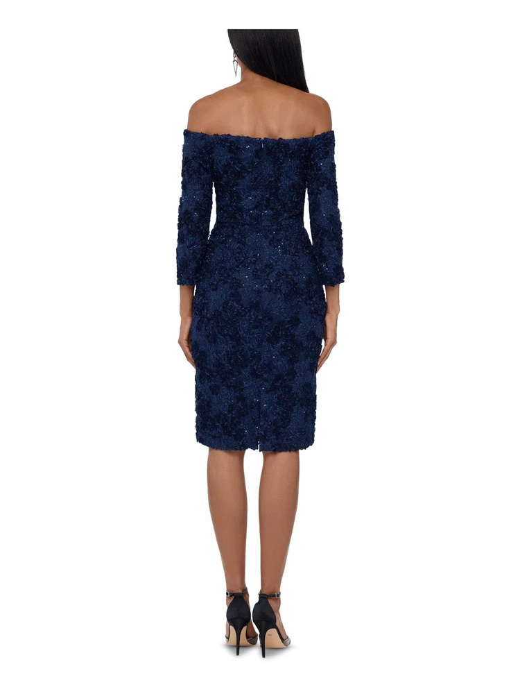 XSCAPE Womens 3/4 Sleeve Off Shoulder Knee Length Evening Body Con Dress