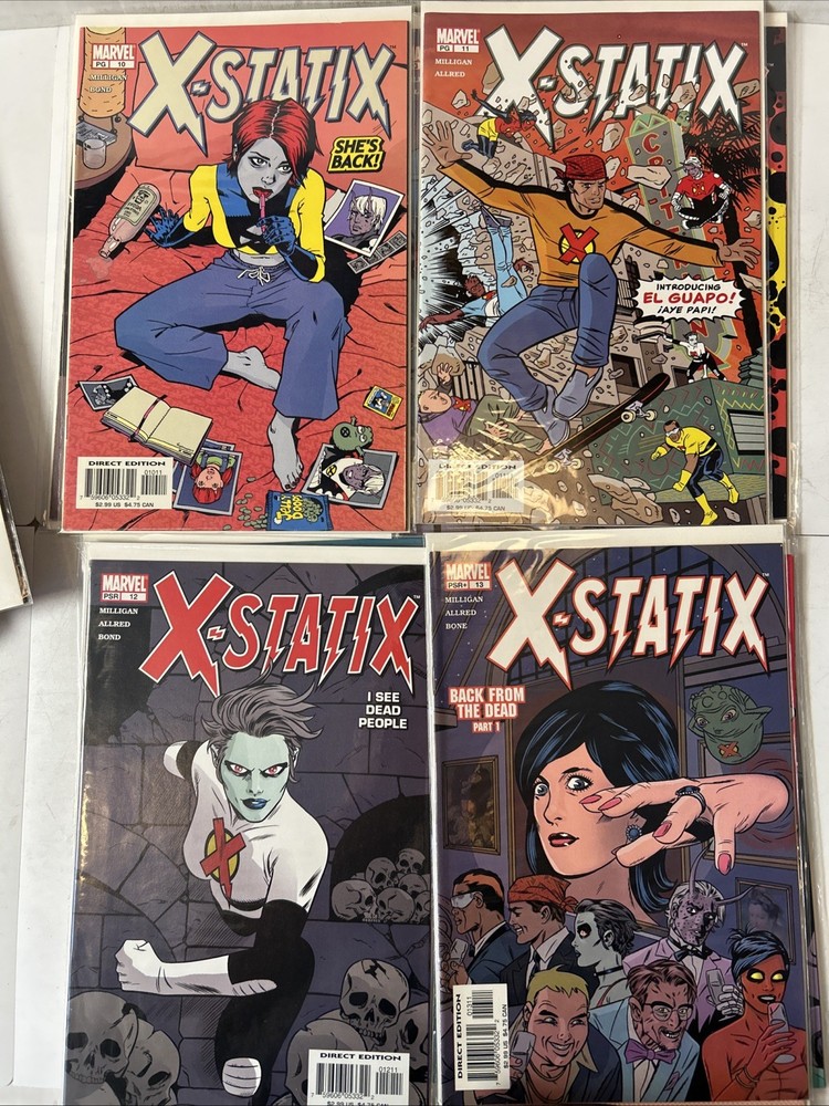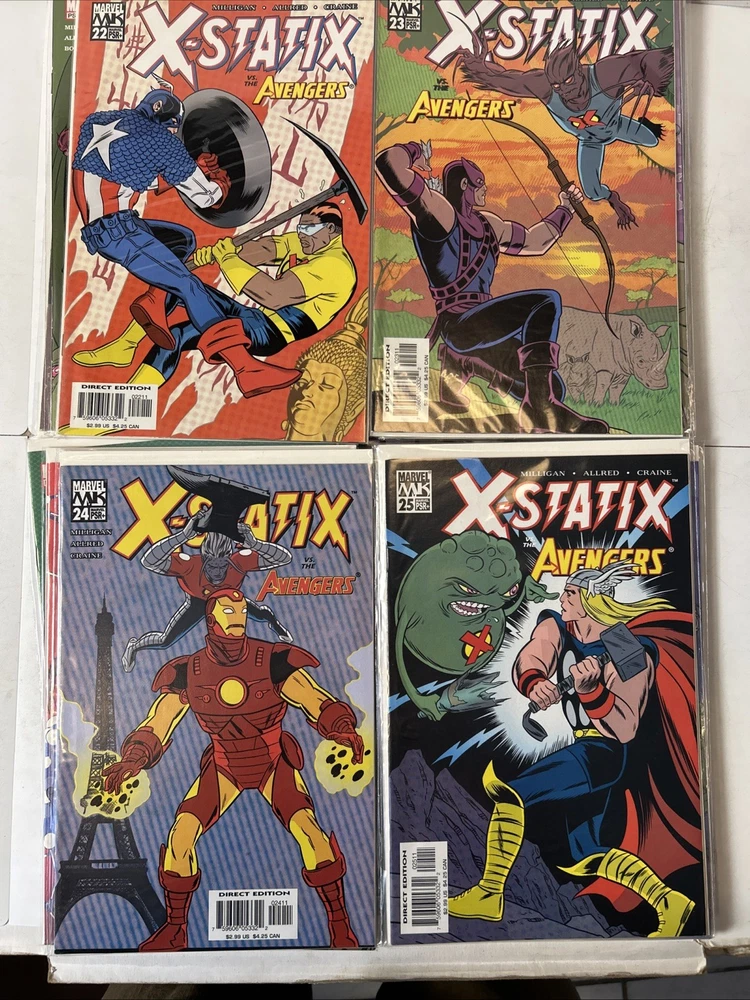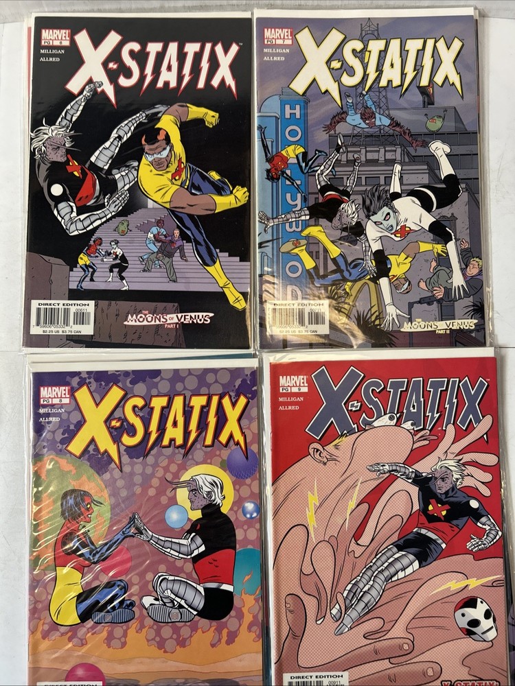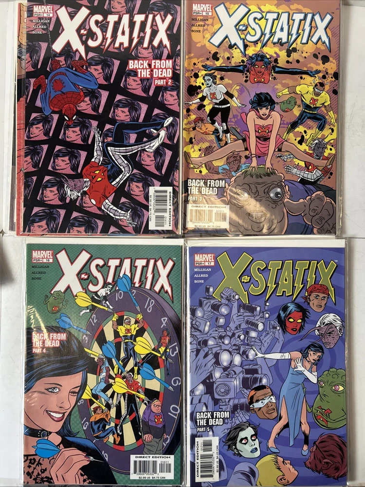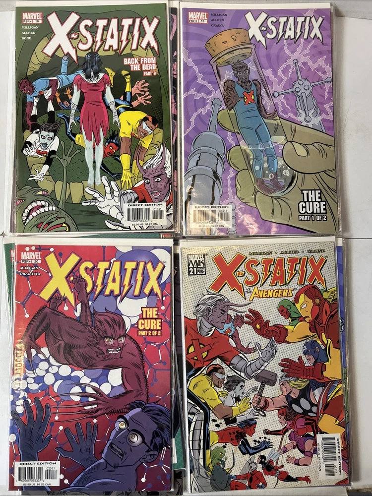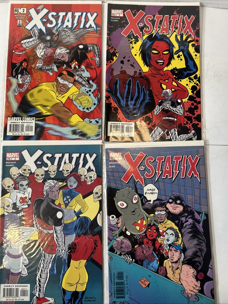 Complete run #1-26 Complete VF-NM Bagged and boarded The X-Statix comic book series, published by Marvel Comics in 2002, is a complete set of #1-26 in very fine/near mint condition. Written by Peter Milligan and with cover art by Mike Allred, this US comic book features the X-Statix superhero team, part of the Marvel Universe. With a modern age style and color format, this comic is intended for a general audience and is a valuable addition to any comic book collection, especially for fans of the X-Men storyline.