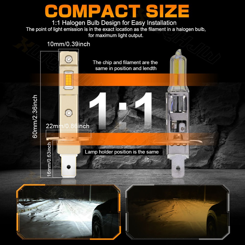 Information: If you are unsure the item fit or not , please do remember send message to tell us your car make, model, year and other information which is helpful to check the item fit or not. For example: 2004 Ford F150, high/low beam 2015 RAM 1500 with projector-type, high beam 2019 Ford F150 ,XL Crew Cab Pickup 4-Door 2.7L Specifications: Bulb Size: H1+H1 Usage: Headlight or Fog Light Voltage: DC 11-30V Power: 40W Lumen: 4000LM Color Temperature: 6000K Chips: customized CSP chips Material: Aviation 6063 aluminum profile Fanless: Built-in integrated fan Lifespan: 50,000 hours Waterproof Rate: IP68 Operating Temperature: -45℃~+150℃ Warranty: 5 years warranty Package Include: 4x H1+H1 Headlight Kit (New and old packaging will be shipped randomly) Install Caution: 1. As a safety precaution, make sure that the car has had time to cool down properly before starting the installation process. 2. Put the vehicle into park or make sure it is securely in gear. 3. Be sure to turn off the ignition and remove the key. 4. Be careful to avoid burns, especially when turning on or off the vehicles lighting. 5. Be careful to avoid crushing or cutting the bulbs. Also make sure to not touch the bulbs with your fingers, as this will cause blotting. 6. Fully examine the connection of the contact points, ports and the wires as faulty connections can cause lighting problems. 7. Make certain that the end of the bulb does not come in contact with the interior light shield of the headlight when adjusting the bulb. 1.Search for the vehicle year, make, model and the installation position in our store. If you are not sure about that, please contact us via ebay message with your vehicle year, make and model. Let us know which bulb you're interested in, so we can check the fitment and get back to you as soon as possible. 2.Will this bulb fit my vehicle? We can match almost any vehicle to one of our bulb sizes. eBay only lets us include 3,000 vehicle fitments per listing, but if your vehicle does not show up on the compatibility table at the top of our listings, welcome you to contact us for free consulation before purchasing a product. 3.I bought the wrong items/ the items were not compatible with my vehicle. Please contact us via ebay message to get quick support. 4.Neither side lighting up? Both sides flicker, flash, or work inconsistantly. Check the headlight fuses, and then check the ballast plugs to insure correct installation. If this doesn't work, there may be a voltage problem with the vehicle. You probably just need a relay or capacitor. 5.One side could not work? 1)please turn around the plug (swap the polarity) of the defective bulb and try again. 2)please exchange the bulbs from side to side and see if the problem could solve. 3)Please check your connection and fuse. 4)If still could not help, please contact our customer service, we will get back to you within 48 working hours. On Dec 3, 2024 at 20:09:42 PST, seller added the following information: