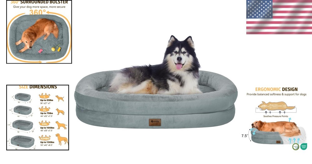 Comfortable XXL Dog Bed in Grey - Memory Foam, Washable & Supportive Bolsters ‹ › ‹ › ‹ › ‹ › ‹ › ‹ › ‹ › ‹ › ‹ › Comfortable XXL Dog Bed in Grey - Memory Foam, Washable & Supportive Bolsters Product Features: Orthopedic Egg Crate Foam: CertiPUR US certified, this high-density egg crate foam delivers balanced softness and orthopedic support for your furry companion. Designed to evenly distribute your dog’s weight, it effectively relieves muscle and joint pressure, making it an ideal bed for dogs of all ages and conditions. 360° Surrounded Support: The innovative full circle design creates a secure sleeping environment that is perfect for pups who prefer cozy, enclosed spaces. The supportive bolsters serve not only as a headrest but also provide extra support for their neck and back, accommodating all sleeping positions - whether your dog likes to curl up or stretch out. Waterproof & Easy to Clean: The waterproof layer enveloping the mattress protects against any unexpected accidents and spills, ensuring long-lasting use. The removable cover can be easily detached for effortless machine washing, keeping your dog's bed fresh and clean with minimal effort. Skin Friendly Materials: Crafted with ultra-soft fleece, this luxurious dog bed keeps your furry friend warm and comfortable during their rest. The non-shedding fabric maintains its exquisite softness even after multiple washes, ensuring a cozy spot for to come. Non Slip Bottom: Our dog bed features a non-slip bottom that prevents sliding on slippery surfaces such as hardwood or tile. This stability ensures that the bed remains firmly in place, reducing the need for constant repositioning by pet owners as dogs get in and out. Why Your Dog Will Love It: Give your beloved pet the gift of comfort and support with our Comfortable XXL Dog Bed. Designed with their well-being in mind, the orthopedic foam and 360° bolstered edges create the perfect sanctuary for lounging and sleeping, allowing them to enjoy restful nights and rejuvenating naps. Easy to clean and crafted from durable, skin-friendly materials, this dog bed is a practical choice that will keep your pet cozy and happy. Transform your dog's sleep experience—order the Comfortable XXL Dog Bed in Grey today for the ultimate in luxury and support! Shipping Free & Fast Shipping - We offer free shipping to most of the USA with a normal delivery time of 3-7 days. However, due to the current situation, additional delivery time (up to 3 weeks) may be required for some items. Alternative Carriers - We may use alternative carriers (e.g. USPS, FedEx, UPS, etc.) to ensure your package arrives safely and on time. Due to the use of multiple carriers, we are unable to provide a tracking number automatically. Handling Time - Orders are processed and shipped within 1-2 business days of receiving cleared payment. Shipping Restrictions - Shipping to Alaska, Hawaii, Puerto Rico, Guam, and other US territories may incur shipping charges or delivery restrictions. Please contact us before ordering, or your order can be refunded/cancelled. State Restrictions - There may be restrictions based on your state of purchase. For example, certain items may not be shipped to California due to state regulations. Contact for Tracking Updates - If you require tracking updates or have any concerns about the delivery of your order, please feel free to contact us, and we will be happy to assist you. Return 30-Day Hassle-Free Returns - We want you to be completely satisfied with your purchase. If you are not, you can return the item within 30 days of receiving it for a full refund or exchange. Easy Return Process - To start a return, simply contact us and we will provide you with a prepaid return shipping label and detailed instructions. Restocking Fee - There are no restocking fees for returns. However, the buyer is responsible for return shipping costs if the return is not due to a seller's error. Refund Processing Time - Refunds will be processed within 5 business days of receiving the returned item in its condition. Payment We accept all major credit cards, PayPal, and Apple Pay for your convenience. Your payment information is secure and encrypted to ensure a safe and seamless transaction. Please complete your payment within 3 days of purchase to avoid any delays in shipping. Feedback Your feedback is extremely important to us. We strive to provide the best products and customer service possible. If you are satisfied with your purchase, please take a moment to leave us a positive review. If you have any concerns or issues with your order, please contact us before leaving negative feedback. We are committed to resolving any problems and ensuring your satisfaction. Contact Us If you have any questions or concerns, please feel free to out to our customer support team. You can contact us through the eBay messaging system. We are available Monday to Friday, 9:00 am to 5:00 pm EST, and we will do our best to respond to your inquiry within 24 hours. Buy it now and enjoy a pleasant shopping experience! Unit Quantity: 9.48 Features: Machine Washable,Orthopedic,Waterproof,Easy to Clean,Durable,Non-Slip Dog Size: L Dog Breed: Labrador Retriever Type: Dog Bed Material: Memory Foam