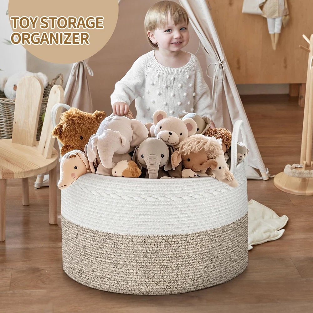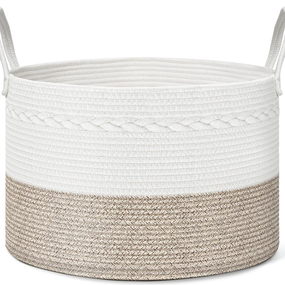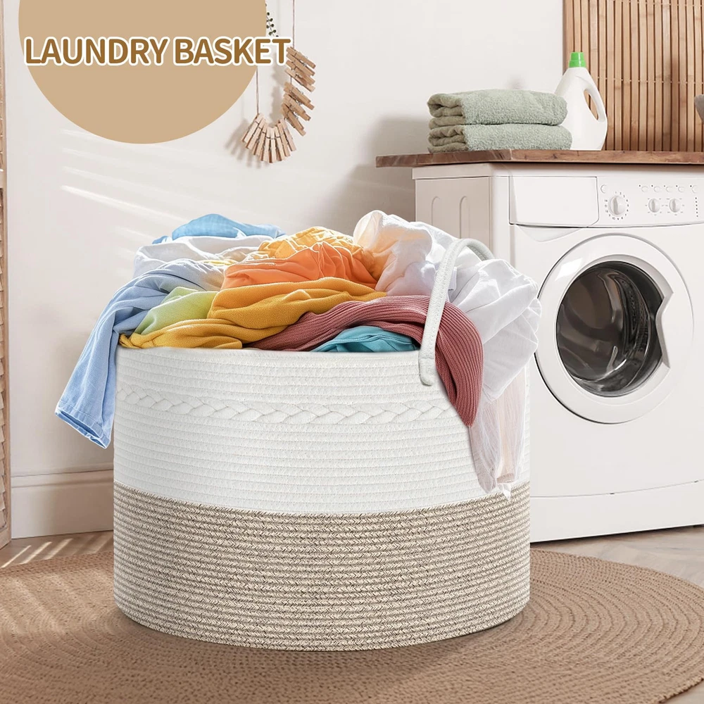 Extra Large Basket: The 21.7" x 21.7" x 13.8" storage bin has a large 83L capacity, and can easily hold bulky items. If you want to keep your home organized, our round basket can help you eliminate clutter and ensure your living space is spacious and tidy High Quality and Safety: The clothes hamper is made of cotton rope, free, no nasty odor, safe for storing intimate clothes. This blanket organizer has no sharp edges, making it safe for and pets. You can use it in your home with confidence Sturdy and Portable: The wicker basket is soft yet sturdy. It is tightly woven with thick threads and reinforced with stitching for long-term use. The handle is comfortable and easy to hold, can support heavy objects, and can also be dragged easily Multi-Purpose Decorative Basket: Towel baskets are the key to a functional and tidy home. They can help you organize blankets, toys, pillows and other sundries, easily eliminating clutter. Modern neutral design that goes well with any type of home decor Portable: The nursery basket is folded for shipping. It will turn back to its elegant shape quickly by filling it with blankets, and ironing is great idea to smooth the creases. Also, you can fold it into a flat shape for easy storage when not in use