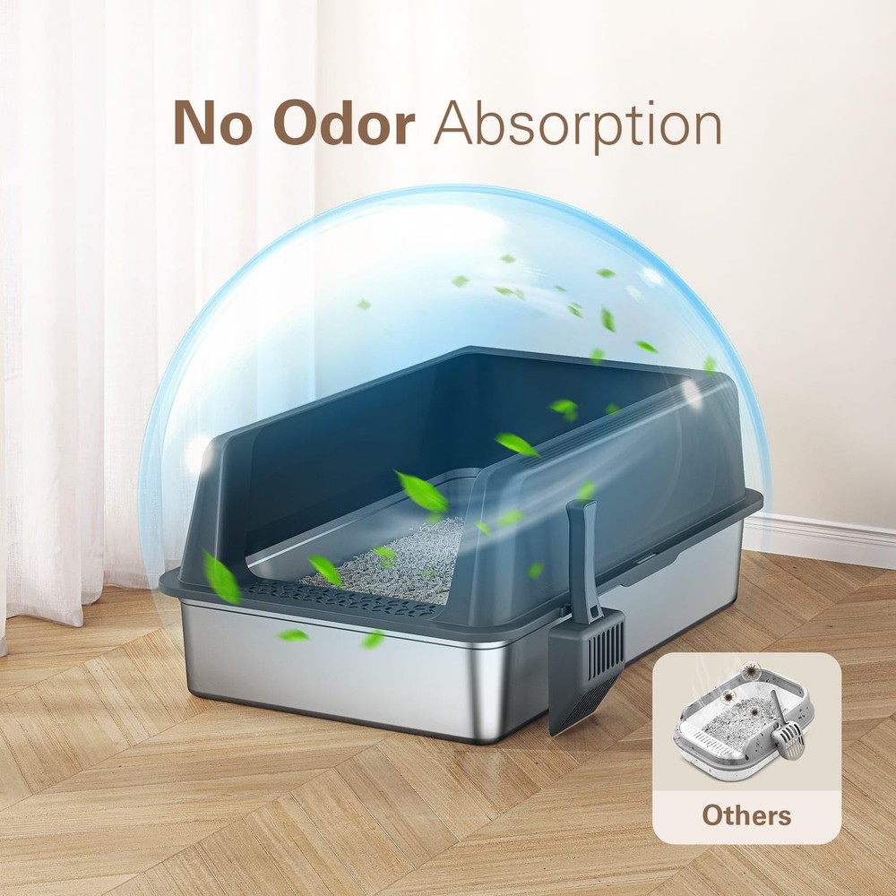 $ 55.62Stainless Steel Cat Litter Box with 180° Flip Top Lid, XL High Sides, Odor Control