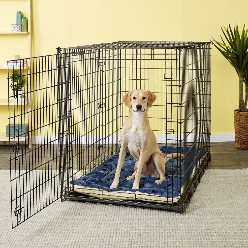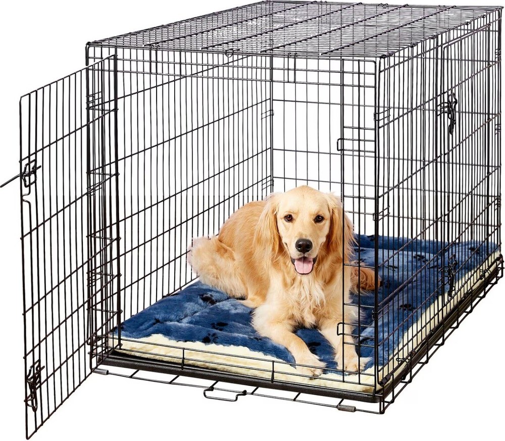 This reversible crate mat is a game-changer for pet comfort! The ultra-soft fleece and plush sheepskin sides keep my dog cozy all year, staying warm in winter and cool in summer. The generous stuffing provides excellent support, while the stylish blue paw print design fits any room. Best of all, it's machine washable for easy cleanup. My pup loves lounging on it all day!