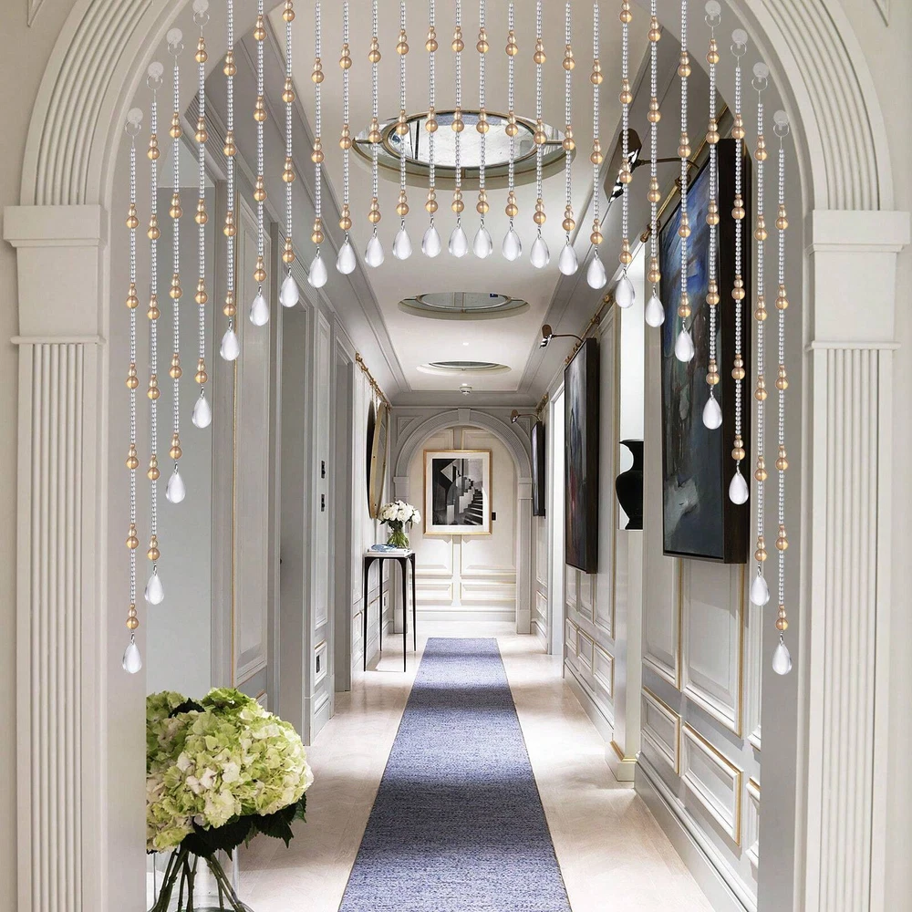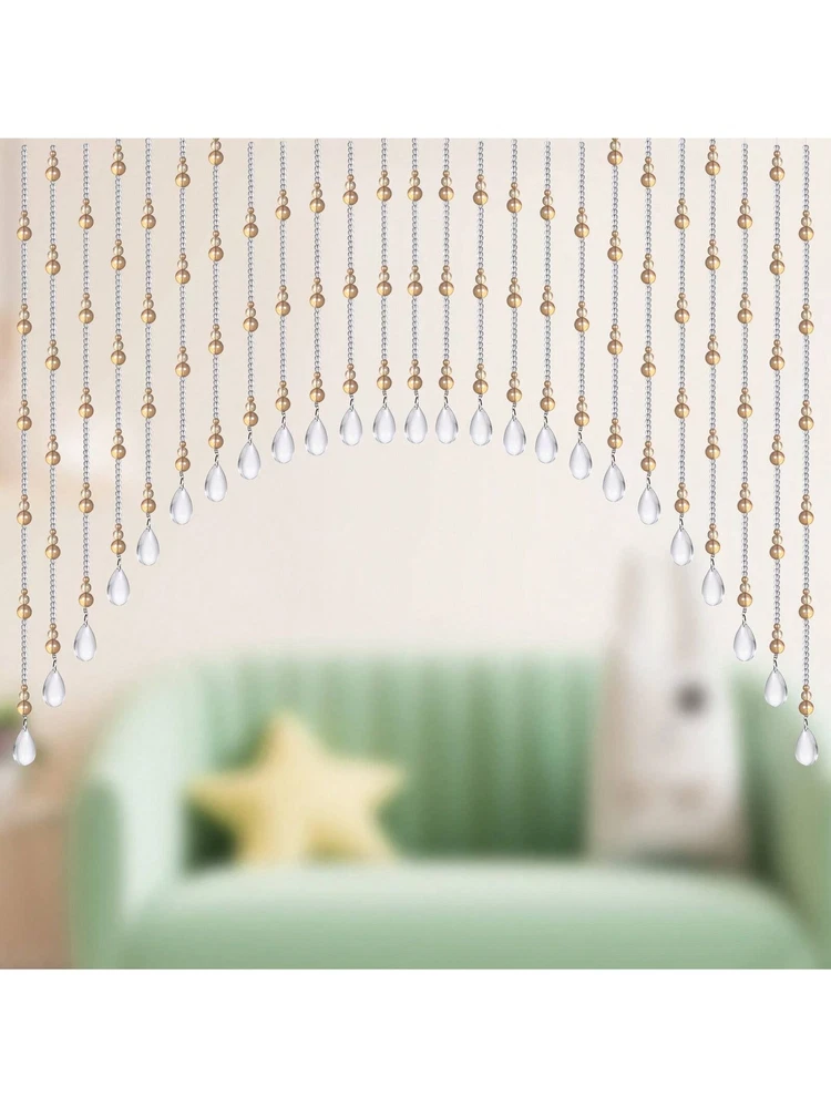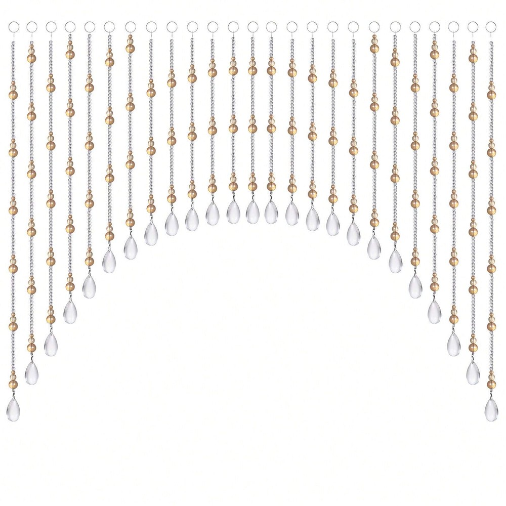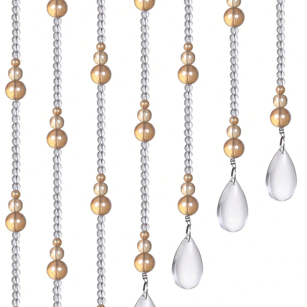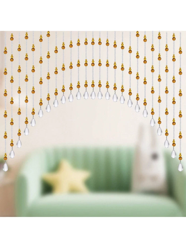 1. This stunning crystal beaded curtain instantly elevates any doorway or room divider with its luxurious amber-champagne glow. The high-quality glass beads have a beautiful gourd shape that catches the light elegantly, while the sturdy stainless steel threading ensures they'll last. It adds just the right amount of privacy while still letting light filter through beautifully. Perfect for creating a bohemian chic or glamorous atmosphere - absolutely love how it transforms my space!