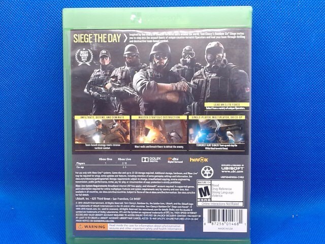 gtin13: 887256301446 Game Name: Tom Clancy's Rainbow Six: Siege Publisher: MICROSOFT Platform: Microsoft Xbox One UPC: 887256301446 Model: TOM CLANCYS RAINBOW SIX SIEGE - XBOX ONE