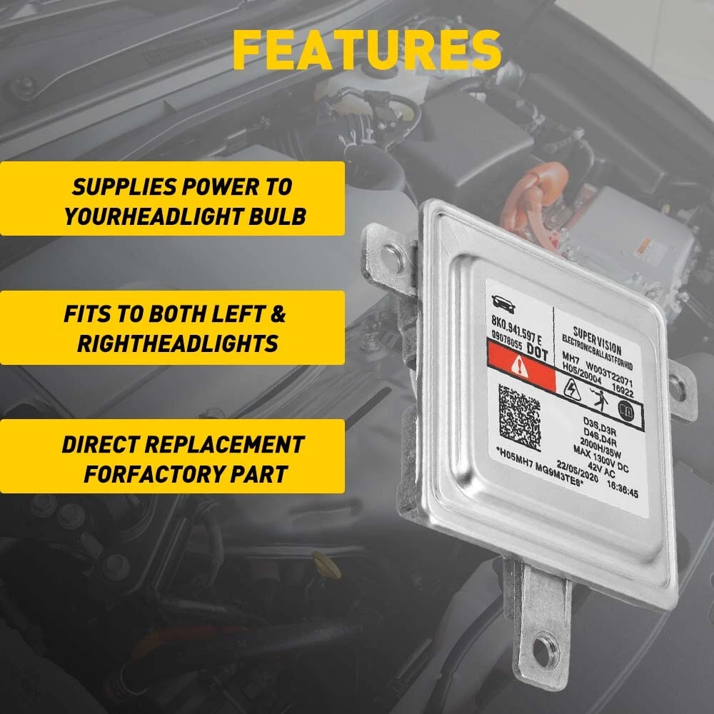 Fits for: Audi A1 2010-2015 Audi A3/S3 2009-2015 Audi A4/S4 2010-2015 Audi A5/S5/RS5 2008-2015 Audi A6/S6/RS6 2009-2015 Audi A7/S7/RS7 2010-2014 Audi A8/S8/A8L 2010-2014 Audi Q5 2009-2015 Audi Q7 2010-2015 Audi Q3 2012-2015 Volkswagen CC 2012-2015 Volkswagen Eos 2012-2015 Volkswagen Golf,GTI 2014-2015 Volkswagen Tiguan 2012-2015 Volkswagen Touareg 2011-2015 Volkswagen Passat 2013-2015 Volkswagen Polo 2010-2013 Specifications: Material:Aluminum Input: DC 12V Output: AC 42V Adaptation bulb??D3S, D3R, D4S, D4R Wattage: 35W Xenon Ballast HID Light Control Unit Computer Module 8K0941597E For Audi VW New Fits for: Audi A1 2010-2015 Audi A3/S3 2009-2015 Audi A4/S4 2010-2015 Audi A5/S5/RS5 2008-2015 Audi A6/S6/RS6 2009-2015 Audi A7/S7/RS7 2010-2014 Audi A8/S8/A8L 2010-2014 Audi Q5 2009-2015 Audi Q7 2010-2015 Audi Q3 2012-2015 Volkswagen CC 2012-2015 Volkswagen Eos 2012-2015 Volkswagen Golf,GTI 2014-2015 Volkswagen Tiguan 2012-2015 Volkswagen Touareg 2011-2015 Volkswagen Passat 2013-2015 Volkswagen Polo 2010-2013 Specifications: Material:Aluminum Input: DC 12V Output: AC 42V Adaptation bulb??D3S, D3R, D4S, D4R Wattage: 35W Manufacturer Part Number: 8K0 941 597 E, W003T22071 Compatible with the Following Part Numbers and Vehicles: for VW/Audi Porsche #: 8K0941597E, 8K0 941 597 E; for Chrysler #: BAM92-143700; for Mitsubishi #: W003T22071, W003T20171, W003T21971. Dorman 601-067. Interchange Part Number: 8K0941597, 8K0 941 597, 8K0-941-597, 8K0-941-597-C, 8K0 941 597 C, 8K0941597C, 8K0-941-597-E Features: *Superior material Made of superior aluminum material to ensure its long service life and stable performance. *Function A ballast is a crucial part of a fluorescent or HID lighting system. In a fluorescent lighting system, the ballast provides the voltage needed to start the lamp and regulates the electrical current of the light once it is lit. Without a ballast, the lamp would draw too much power, causing it to burn out quickly-sometimes even within a few minutes. The ballast prevents this from happening and ensures you get the benefits from the long service time of the lamp. *Description The ballast can act as DC to AC converter so that you can use the normal DC power source in the car to light the bulbs efficiently. The most common problem of HID Ballast failure is flickering, or dipped beam not working, which may result from long-term use. When having problems, you'd better replace them to avoid inconvenience to your driving. *Low power consumption The ballast module with low power consumption and better heat dissipation makes you safer when you are driving at night. *Easy installation Simple installation with direct replacement,other modifications are not required. *Protection The internal waterproof circuit board is treated with adhesive glue irrigation, which will protect internal electronic components from oxidation and aging and reduce vibration caused by loose and poor contact. Packaging include: Ballast Module*1 Item Specifics Brand Unbranded Other Part Number ADQ-Audi Fitment Type Direct Replacement Manufacturer Part Number 8K0 941 597 E, W003T22071 Placement on Vehicle Front Left Right Lighting Technology HID Features Superior material Material Aluminum Input DC 12V Output AC 42V Adaptation bulb D3S, D3R, D4S, D4R Wattage 35W OE/OEM Part Number BAM92-143700; for Mitsubishi Universal Fitment No Packaging include Ballast Module*1 Interchange Part Number W003T22071, W003T20171, W003T21971. Dorman 601-067. Item Length Audi A1 2010-2015,Audi A3/S3 2009-2015 Universal Fitment No Packaging include Ballast Module*1 Interchange Part Number W003T22071, W003T20171, W003T21971. Dorman 601-067. Item Length Audi A1 2010-2015,Audi A3/S3 2009-2015 Payment Variety of payment methods are accepted, such as credit, debit, gift cards, Apply pay, Google Pay, Paypal and Paypal Credit. Shipping 1. All items will be shipped in 24 hours after receiving your payment . 2. We ship this item to US only via USPS first class mail. It usually takes 3-5 working days to deliver. Returns 1. We offer 60 days return policy. 2. Please contact us if you have any questions with the products . 3. Refund will be sent after we got your returned package. 4. All returned items should be in the original packaging with tracking number. Contact Us We work from Monday - Saturday 9:00AM - 6:00PM, but we will reply once we get your message. There will be delay on response if you send message or E-Mail on Sunday. DESCRIPTION PAYMENT SHIPPING RETURN POLICY CONTACT US Shop Category Store Home LED Headlight ◈ 9005 HB3 ◈ 9006 HB4 ◈ 9007 HB5 ◈ H7 LED Fog Light ◈ H8 H9 H11 LED Plate Light LED Reverse Light LED Brake Light Rear Bumper Light LED Tail Light Tail Light assemblies Car Parts & Accessories ◈ LED Third Brake Light ◈ Other Parts & Accessories Other New List Item AUXITO LED License Plate Light 6000K 2X Q Dodge for Ram 1500 2500 3500 2003-2018 USD 15.19 Door Limiting Check Strap Wire Protecting Harness for Jeep Wrangler JK JKU JL JT USD 12.34 Dashboard Pad Dash Cover Mat For 2009-2011 2007 2008 CAMRY TOYOTA Black Dash-mat USD 20.09 Evaporative Emissions System Leak Pump Detection For Ram 17-19 V6 1500 220 3.6L USD 18.99 Uncut Window Tint 5% VLT Film Heat Reduce Shade Blackout Block Mirror Office USA USD 11.49 Hot Item WHITE LED Side Door Light Lamp For Toyota Camry Prius Avalon 4Runner 6000K 12V USD 11.39 Rubber Seal Trim Prevent Water Leakage Windshield Sunroof Roof Top Window 10FT USD 10.99 AUXITO Grille Garnish TSS Sensor Cover For 2018-2021 Toyota Tacoma TRD PRO BLACK USD 13.29 FOR 94-04 MUSTANG PASSENGER or DRIVER SIDE MASTER POWER WINDOW CONTROL SWITCH USD 9.99 Rubber Seal Trim Prevent Water Leakage Windshield Sunroof Roof Top Window 10FT USD 12.34 Excellent Delivery Xenon Ballast HID Light Control Unit Computer Module 8K0941597E For Audi VW New Fits for: Audi A1 2010-2015 Audi A3/S3 2009-2015 Audi A4/S4 2010-2015 Audi A5/S5/RS5 2008-2015 Audi A6/S6/RS6 2009-2015 Audi A7/S7/RS7 2010-2014 Audi A8/S8/A8L 2010-2014 Audi 