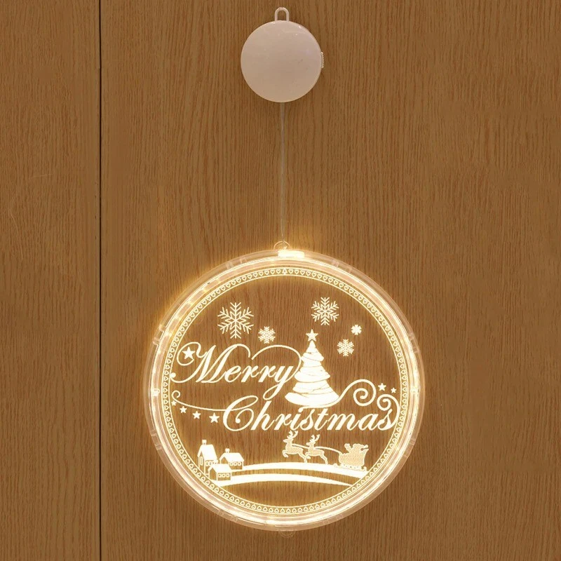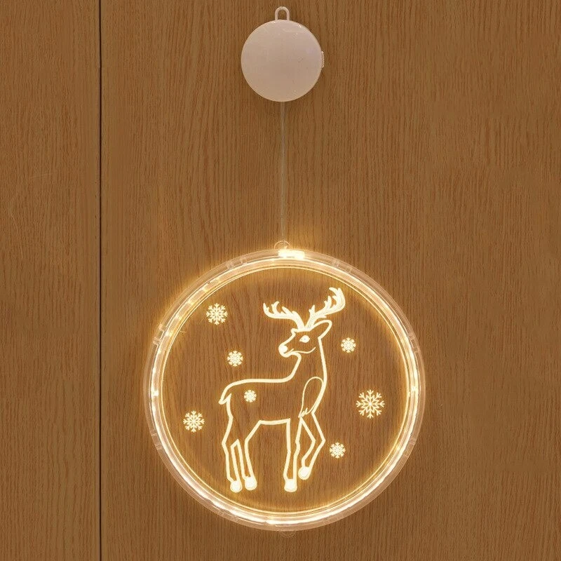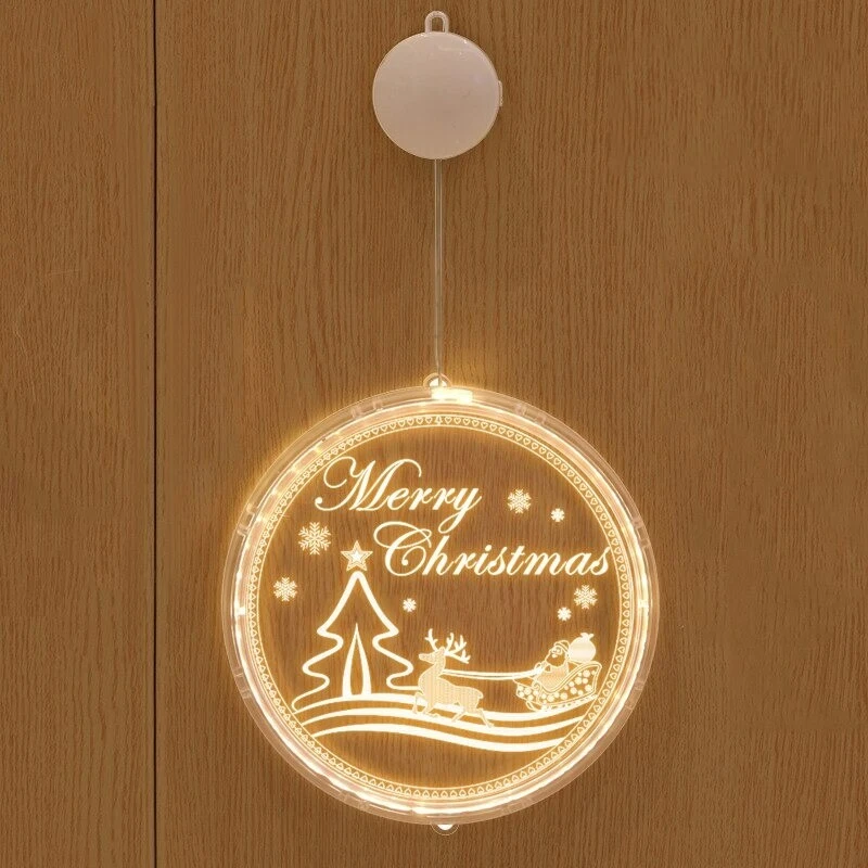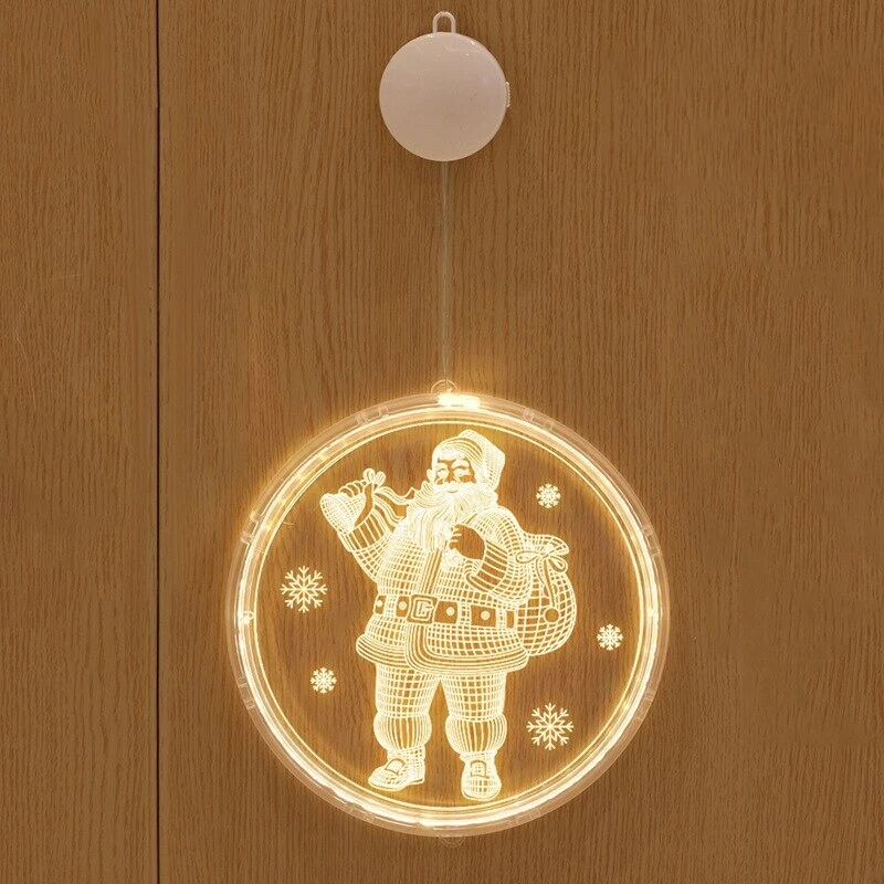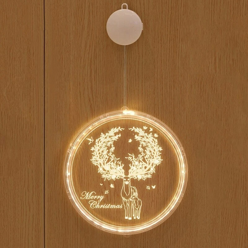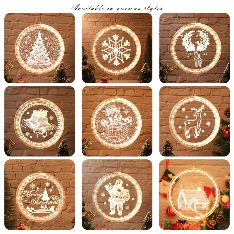 Xmas LED Lights Wall Art Decoration New Year Goods Snowman Deer Bell Home Decor Item Description; Power Supply : 3*AAA Batteries Length : 22 CM Material : LED Lamp Beads Specifications; Easy to Installation 9 Styles with the Length 22CM Waterproof and can be used outdoors (the battery box is not waterproof) Suitable for Christmas tree, Christmas party, shop atmosphere, bar and inn decoration Package Included; 1* Christmas decoration lights with suction cups (without batteries)