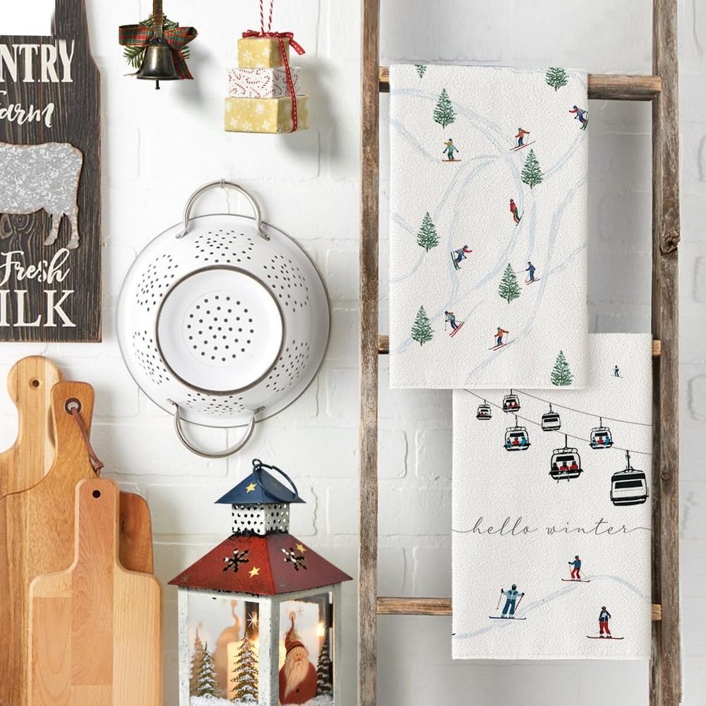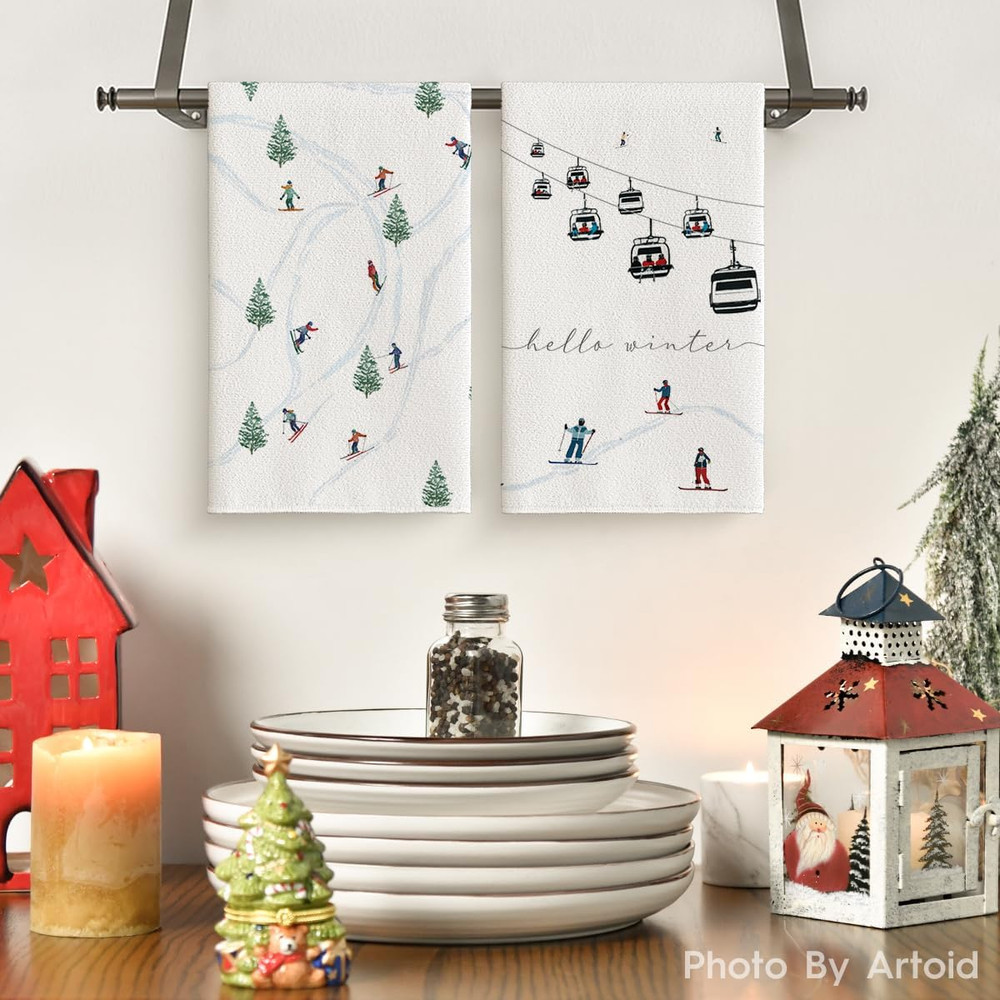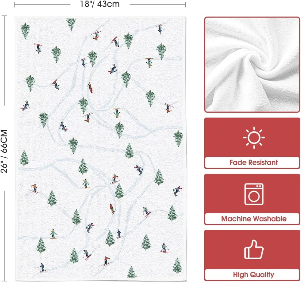 Xmas Trees Ski Winter Kitchen Towels Dish Towels, 18X26 Inch Farmhouse Christmas