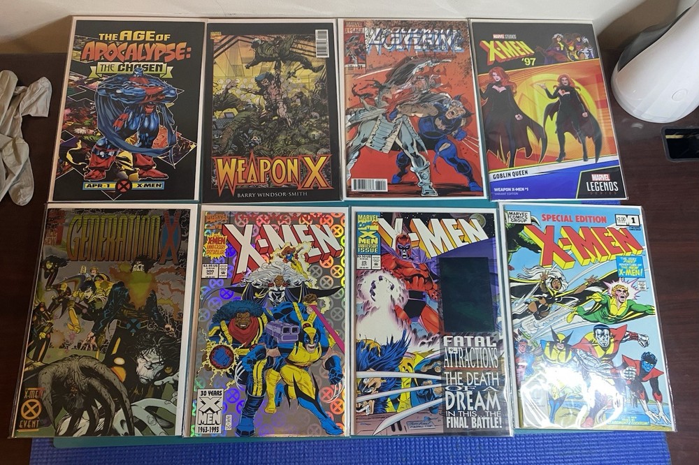 Great bundle of X-men books! X-men 1 (2 covers) X-men Special Edition X-men Chronicles X-men-goblin queen (isweapon X) Age of apocalypse Generation X X-men 300 X-men 25 (Gambit hologram) Weapon X #12 - lenticular Wolverine #31 - lenticular All in good condition. Please request more photos if needed.