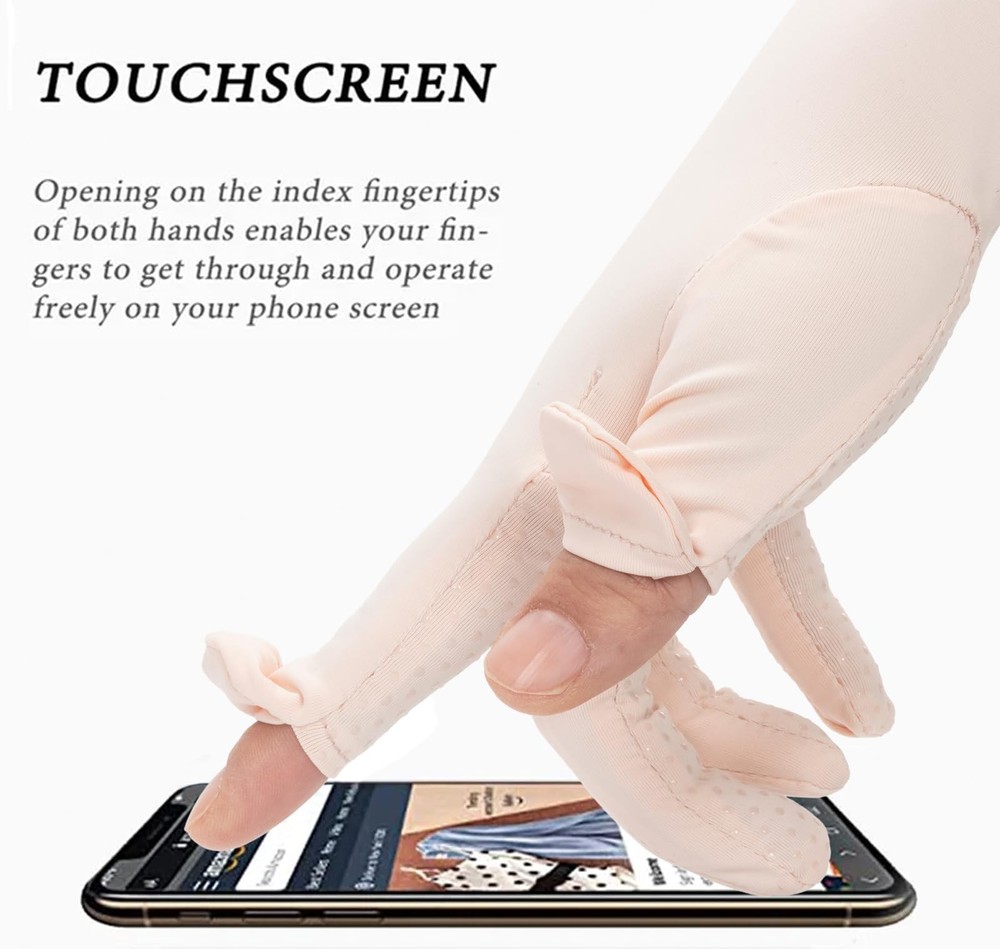 Soft and Comfortable: made of nylon, soft to wear, breathable and stretchy, can protect your hands arms from being sunburned, will serve you for a long time UV Protection Gloves: sun protection gloves can protect your arms from the sun's harmful damage, with good material for better gripping, good touchscreen Size: the summer gloves length of the gloves are about 20.47 inch/ 52 cm, fitting most women's hands; You will feel comfortable to wear and it is not tight Screen Touch Finger: the thumb and index finger of the sunblock gloves are designed with a touch screen design, which is convenient for you to operate your phone with fingers; You can wear gloves to easily operate smartphones, tablets, cellphone or other devices, and you don't have to take off gloves Widely Use: the women long sun protection gloves are proper accessories for driving, cycling, fishing, jogging, going out, golfing, mountaineering, hiking and other spring and summer outdoor activities; You can also use them for indoor activities, including performances, party activities and cosplay
