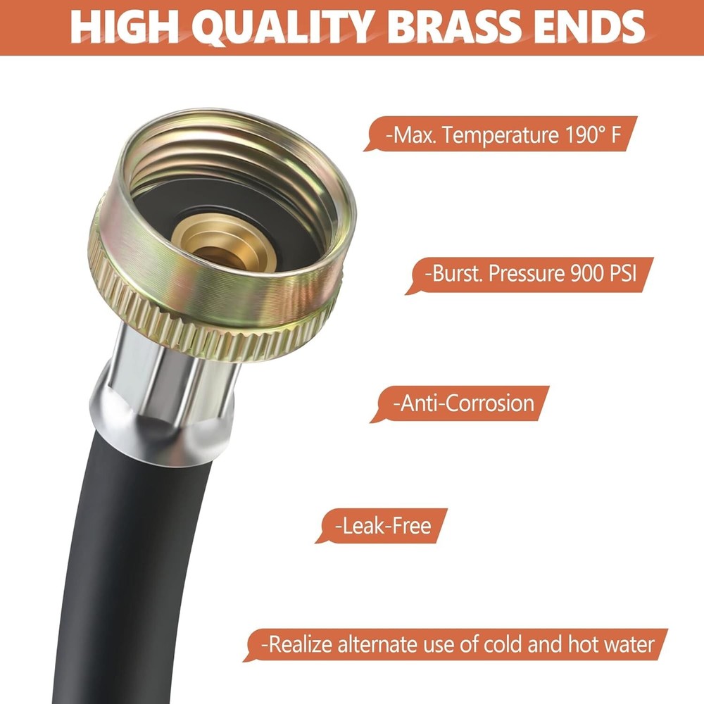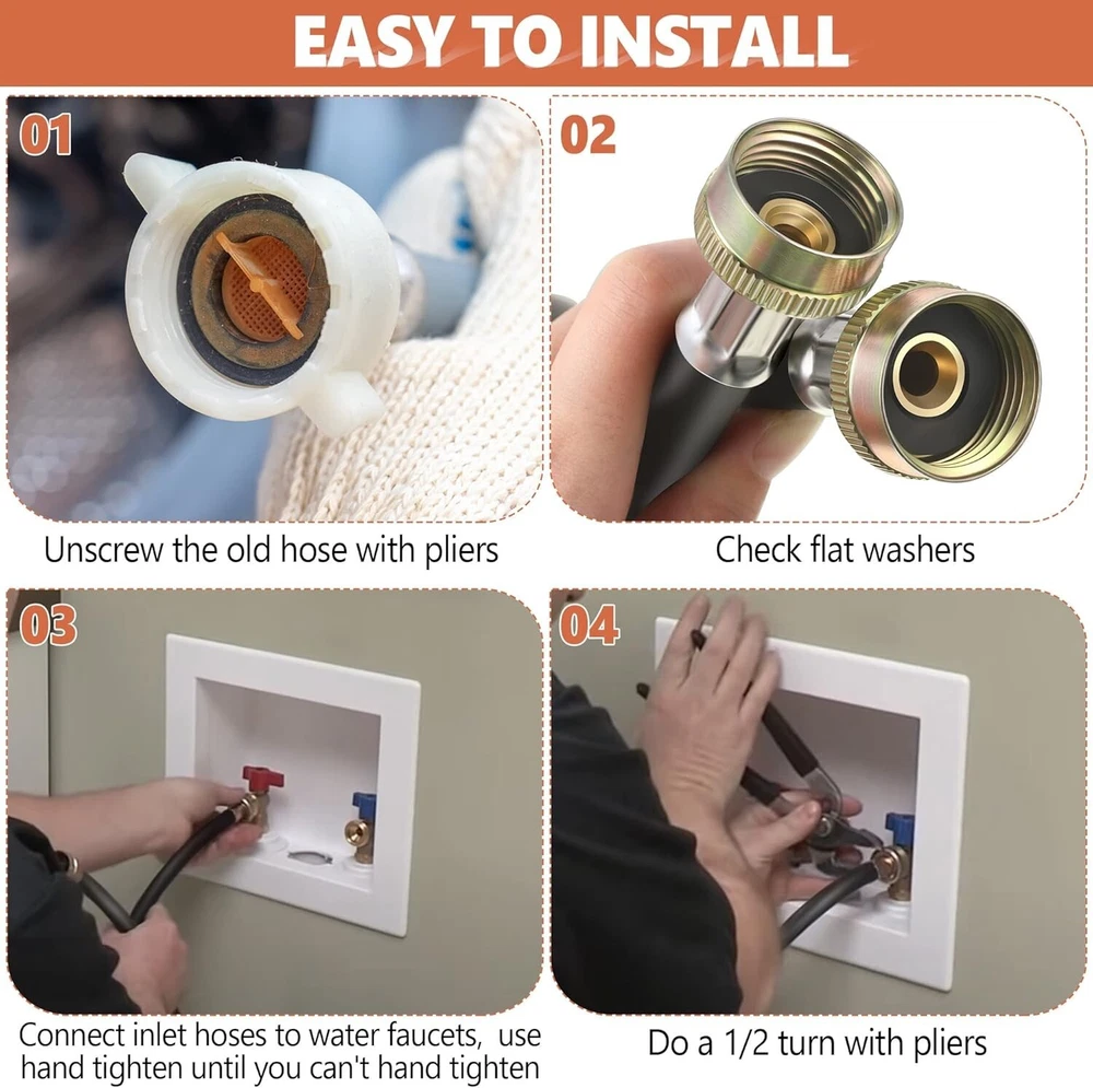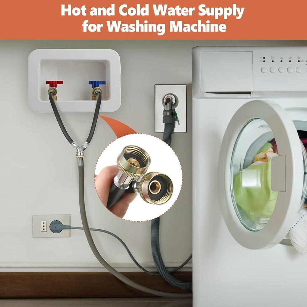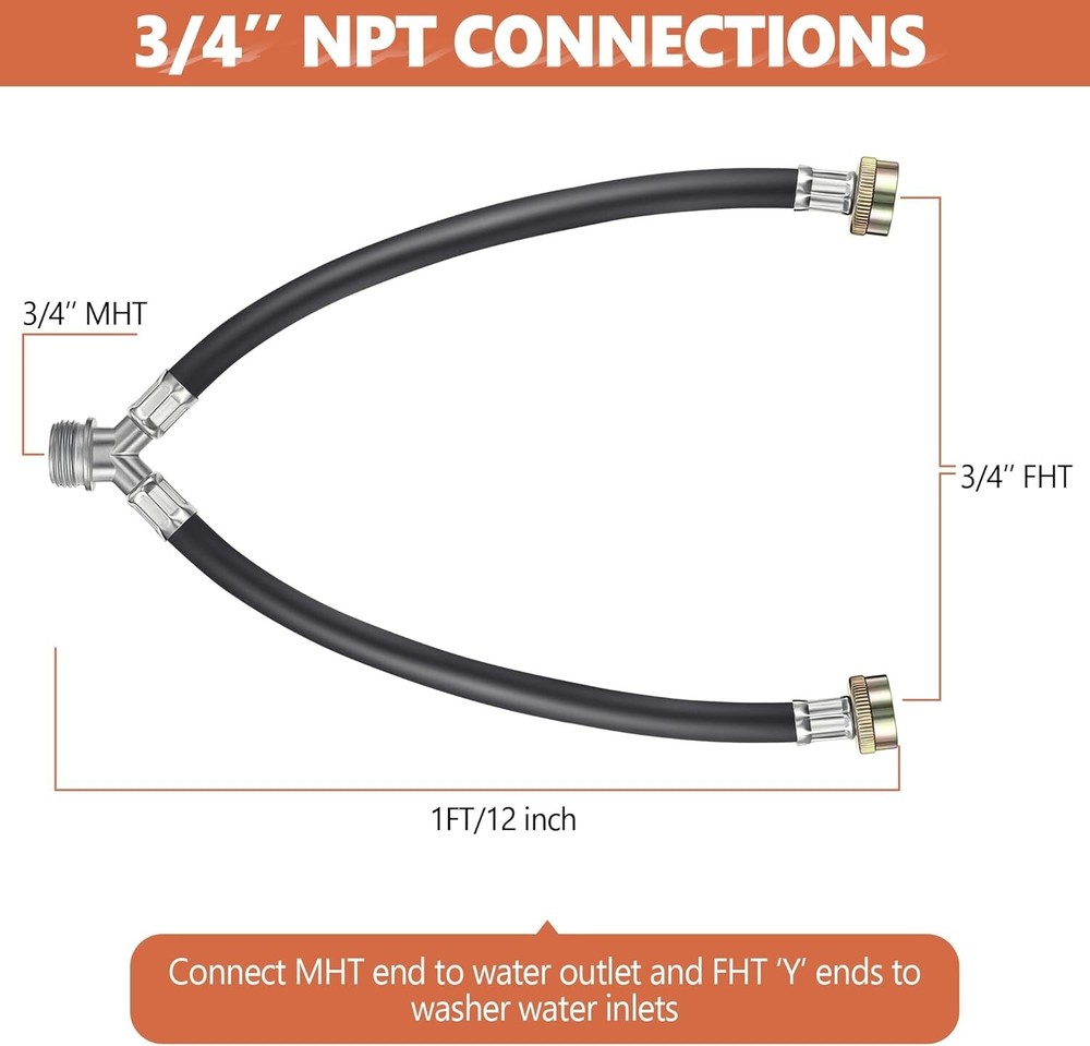 This Y-shaped washing machine hose is a game-changer! The sturdy brass fittings and thick PVC tubing ensure a leak-free connection every time. I love how the rubber washers create a perfect seal, and the zinc alloy male end adds durability. At 12 inches per leg, it's the ideal length for connecting multiple hoses without kinking. The quality materials and smart design make water supply connections so much easier - no more drips or loose fittings! Highly recommend for anyone needing reliable laundry room plumbing.
