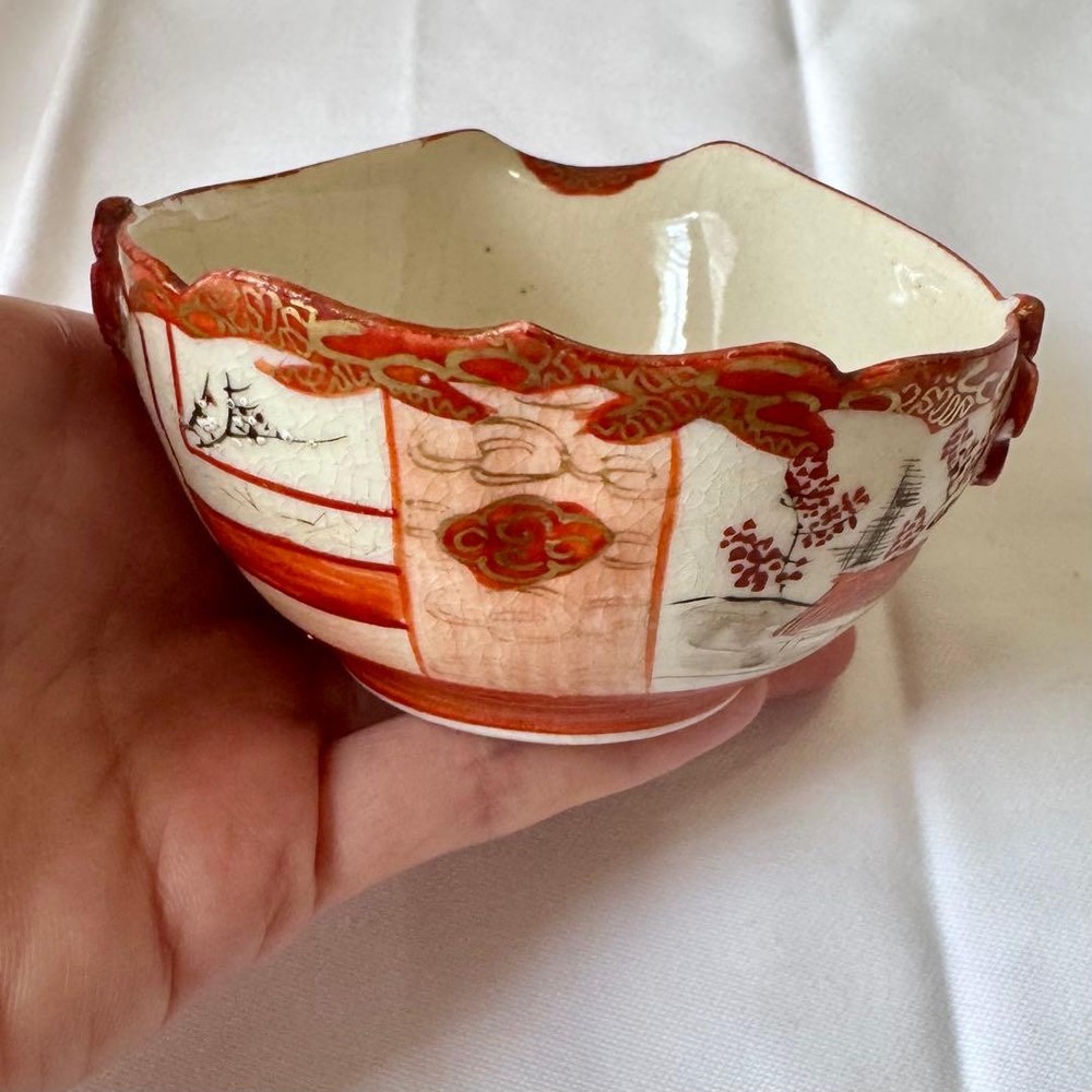 $ 335.08Y0107 Kutani ware Kinhanazume couple'teacup with lid