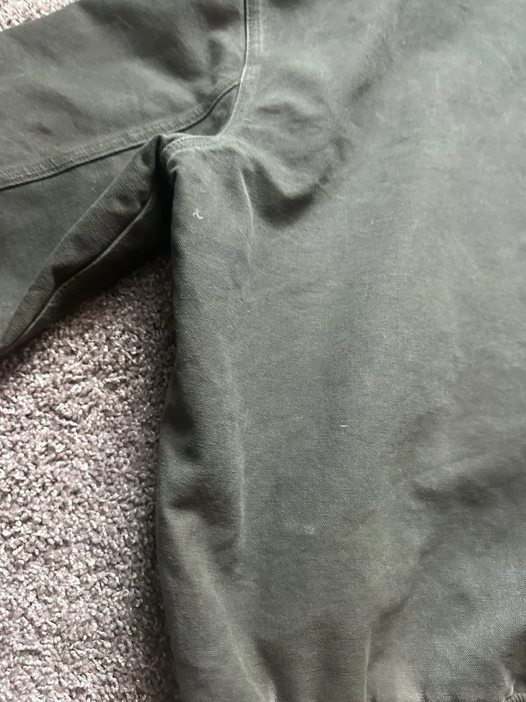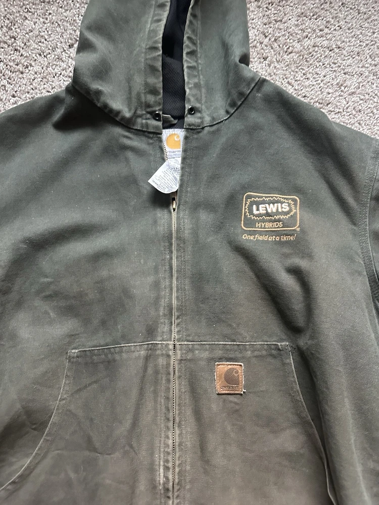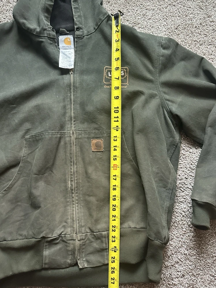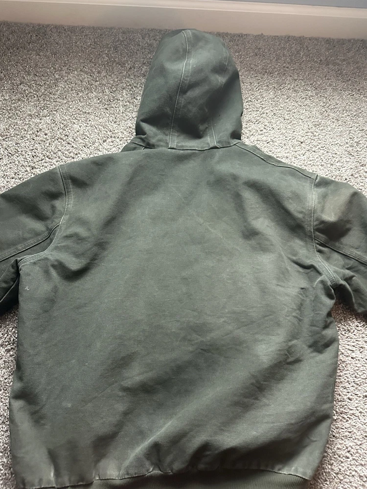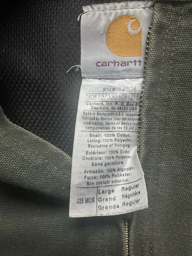Performance/Activity:WalkingOuter Shell Material:CottonSize:LPattern:SolidUPC:Does Not ApplyFeatures:HoodedClosure:ZipStyle:Bomber JacketModel:Carhartt J25 MOSSeason:WinterSize Type:RegularType:JacketCountry/Region of Manufacture:UnknownFit:RegularOccasion:Casualgtin13:Does Not ApplyBrand:CarharttColor:GreenJacket/Coat Length:ShortLining Material:PolyesterTheme:ClassicDepartment:Men