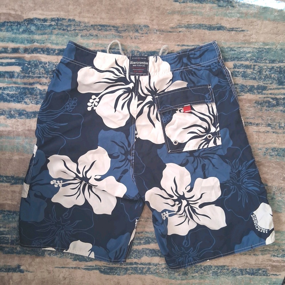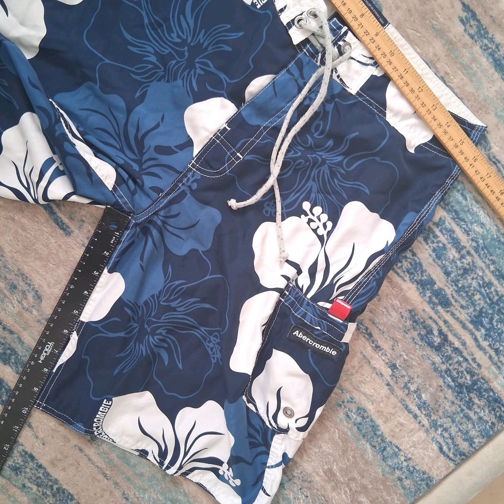 Y2K Abercrombie & Fitch Board Shorts Mens waist size 30-32? Size tag cut out, check pics for measurements, blue & white floral print side & back pocket great condition, very soft