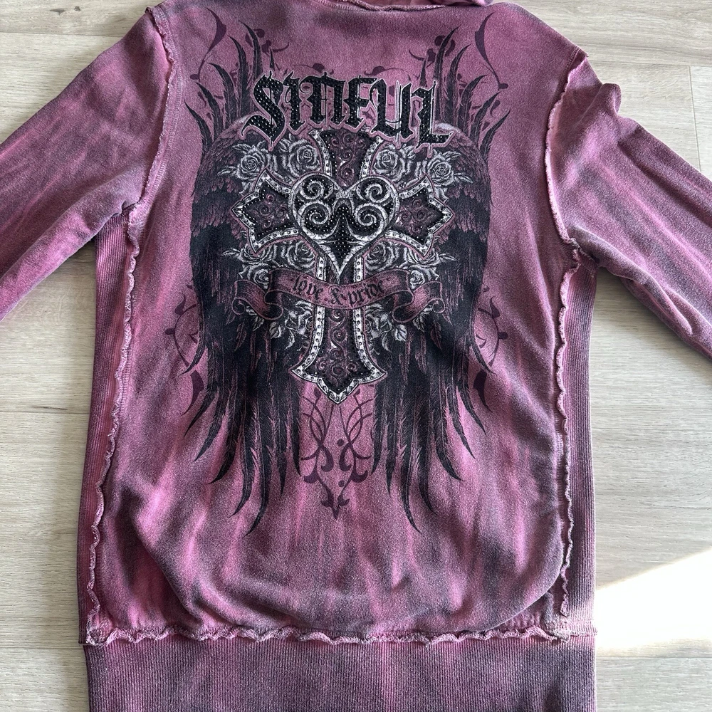 Y2K SINFUL By Affliction Pink Zip Up Jacket Women Size Large. Condition is Pre-owned. Shipped with USPS Ground Advantage.