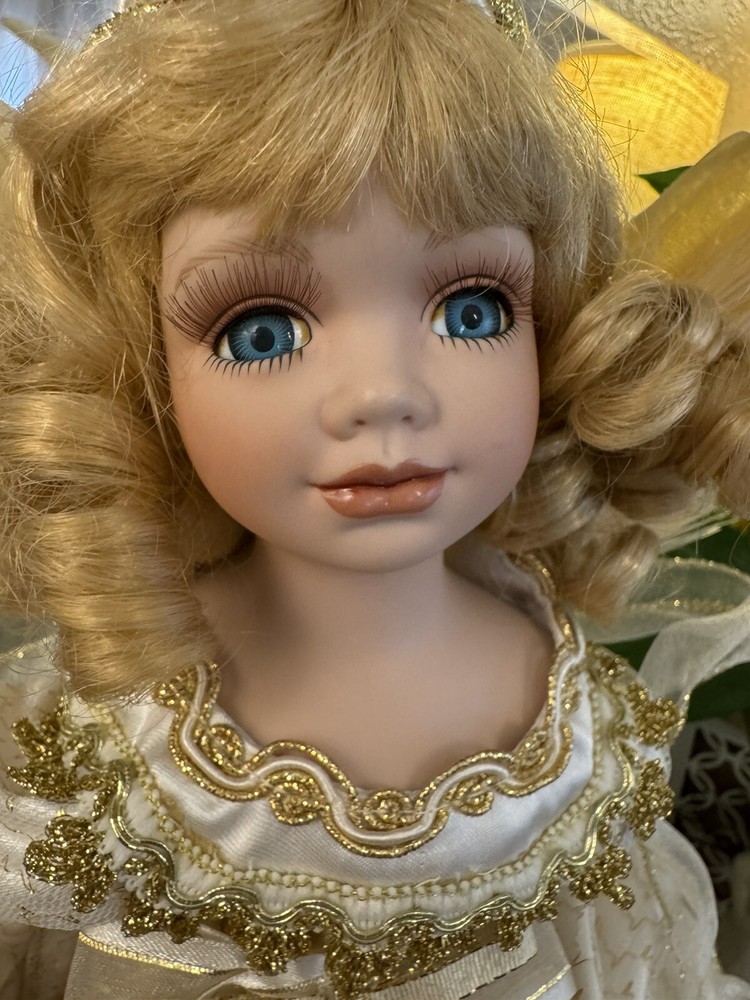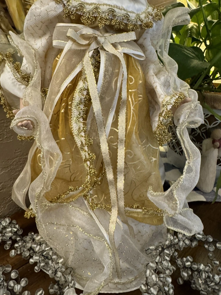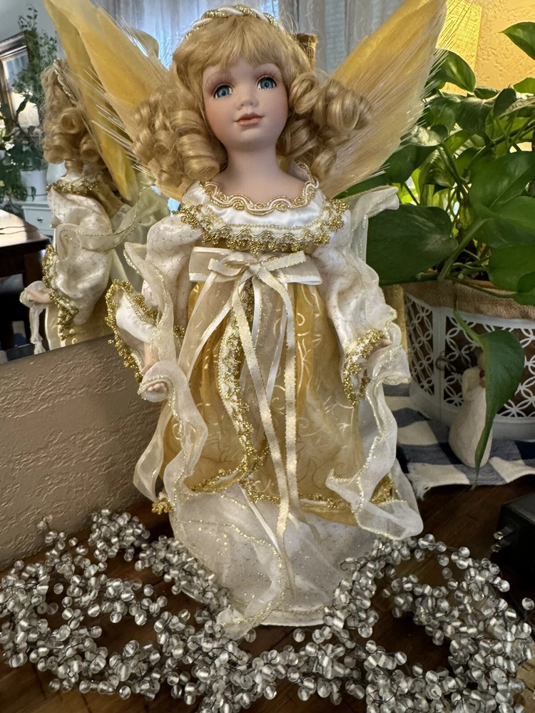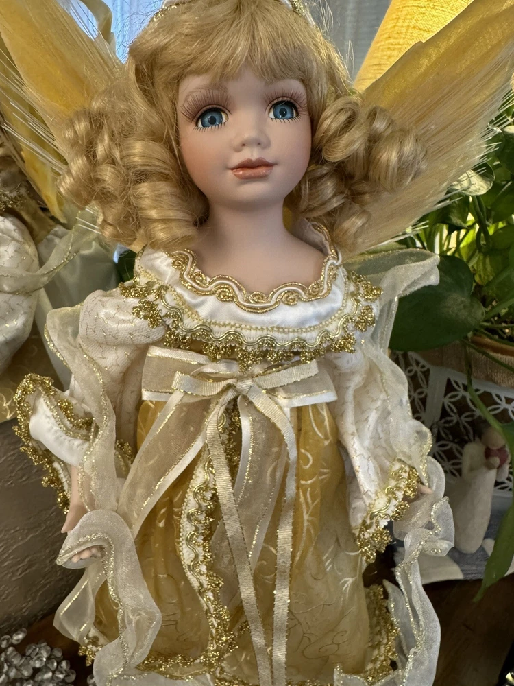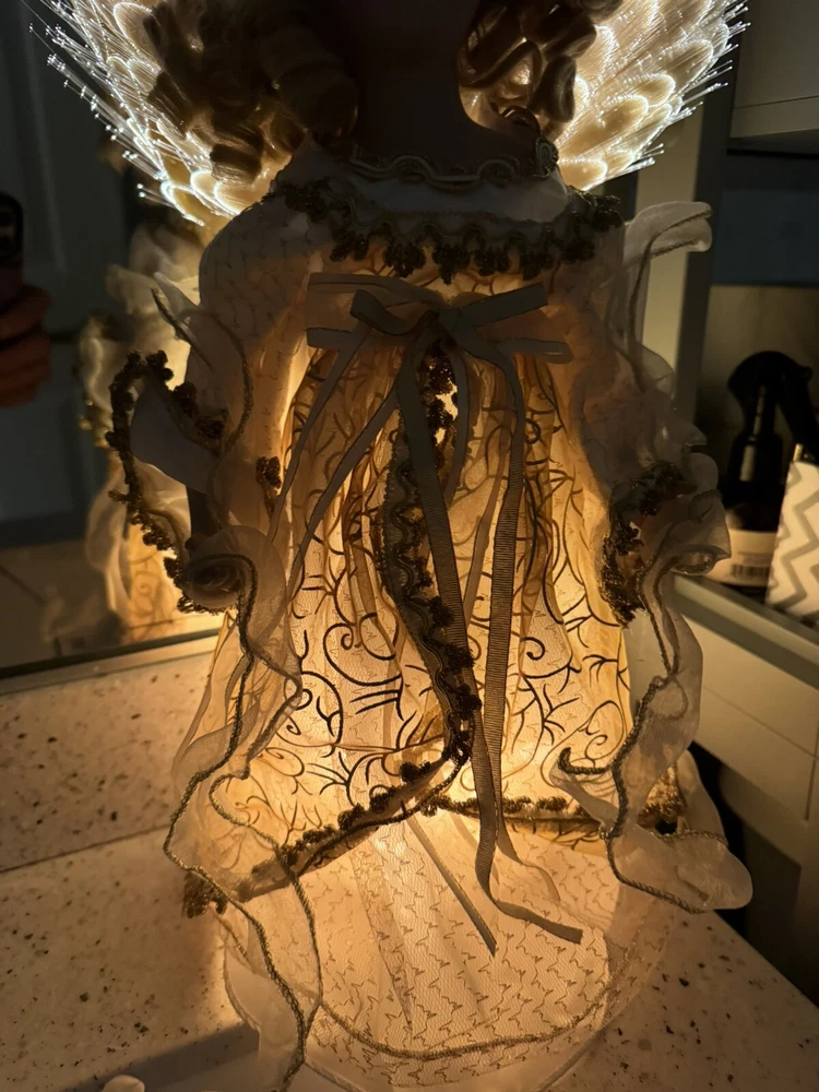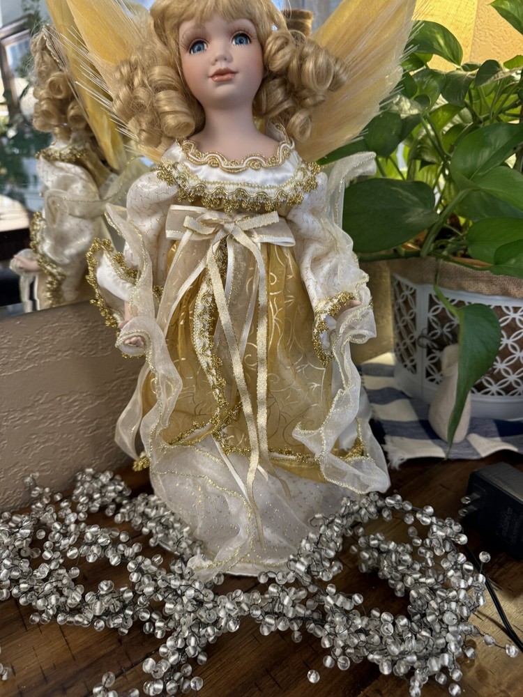 Darling Grandma-Owned Angel....in excellent condition Fiber Optics change color and she gently moves ..even her head....very pretty Add a touch of elegance to your Christmas decor with this Y2K Christmas Fiber Optic Moving Motion Porcelain Angel figurine. The medium-sized figurine stands at 16 inches tall and features a beautiful white and gold gown and lace trimmings... Adult owned COLLECTION Shipped in protective sturdy box EXCELLENT condition Happy to combine for real shipping savings Smoke Free Home Please see all Photos