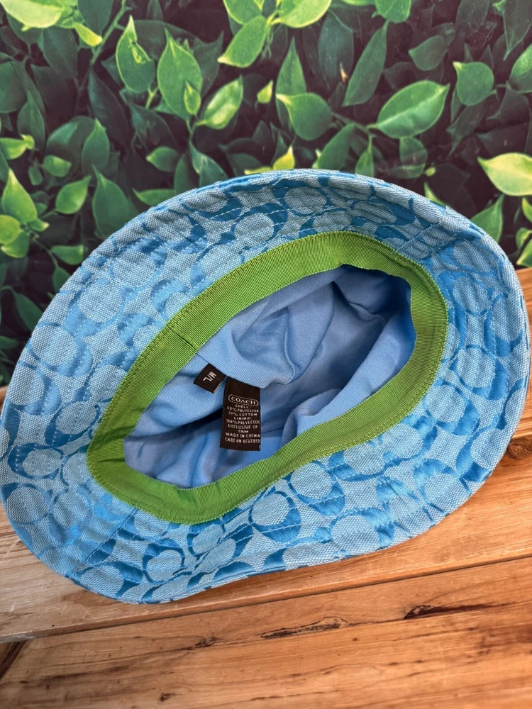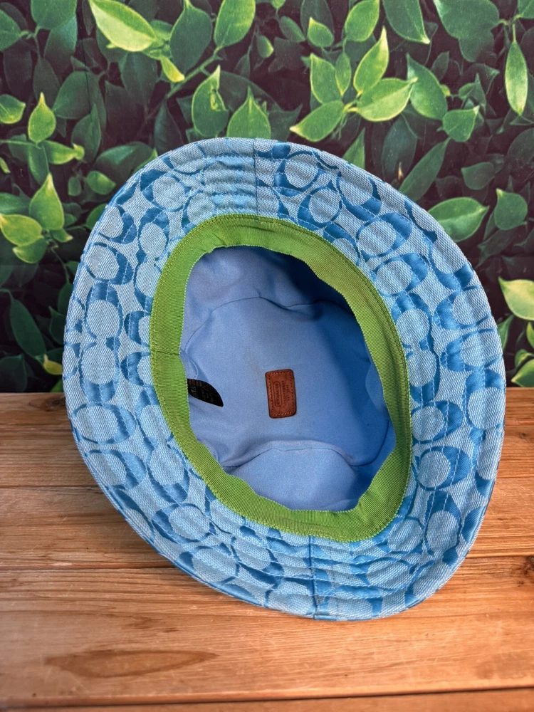 Y2K Coach BRIGHT BLUE Signature Monogram Bucket Hat Leather Trim. Condition is Pre-owned. Shipped with USPS Ground Advantage.
