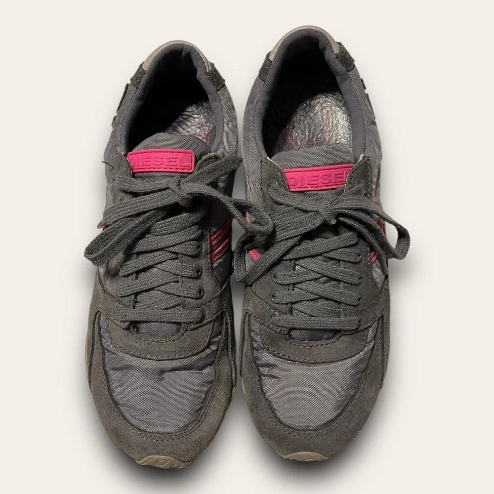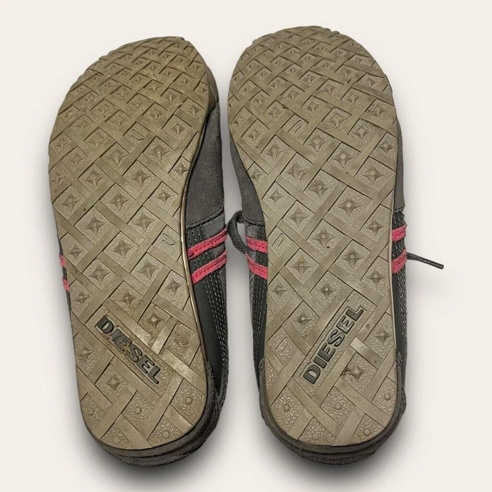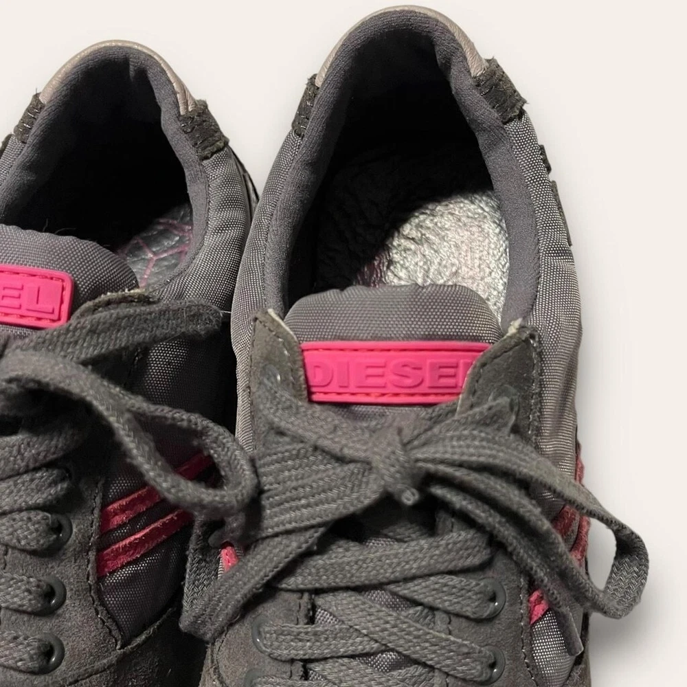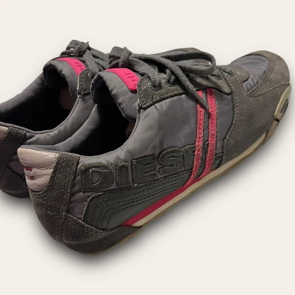 • 2000s sporty blokette tennis shoes by Diesel! low top with a grey & pink colorway, suede details • good, preloved condition, some light wear and scuffing throughout • labeled a women’s size 7.5