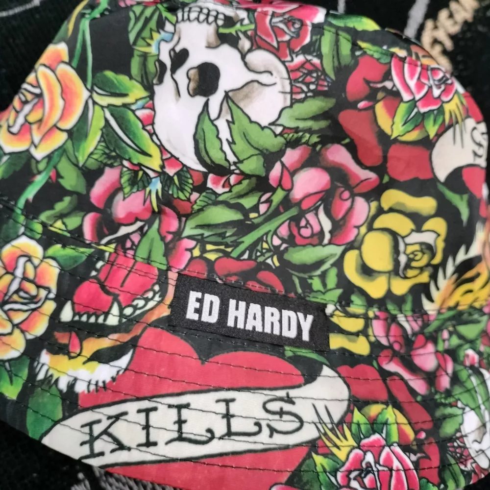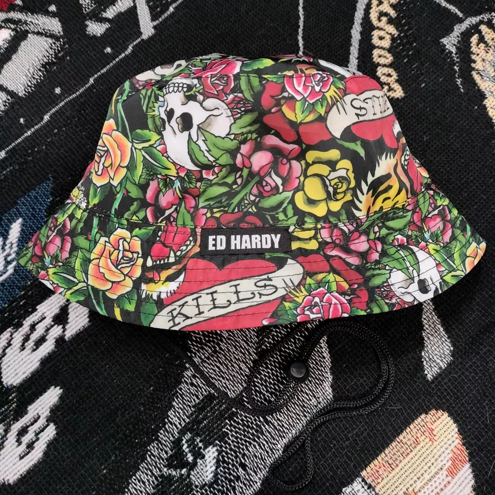 Y2K Ed Hardy All Over Design Bucket Hat Cyber Goth 2000s