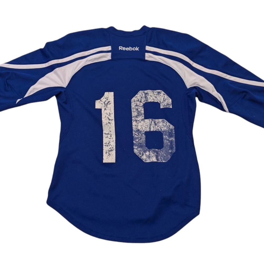 Y2K Florida Panthers Reebok Blue Training Jersey #16 YOUTH L/XL Pre-owned Pre-washed in detergent Light weight Youth jersey #16 is fading off, fabric piling, small tear in the arm, and some loose strings. Refer to pictures for overall condition and sizing.