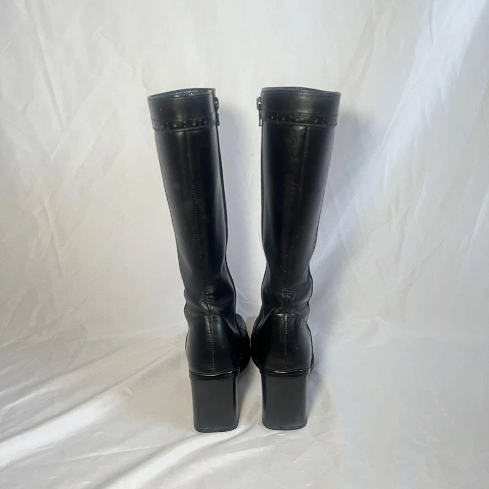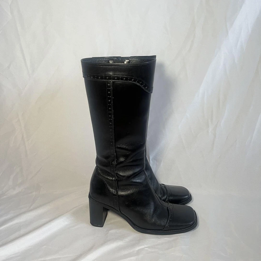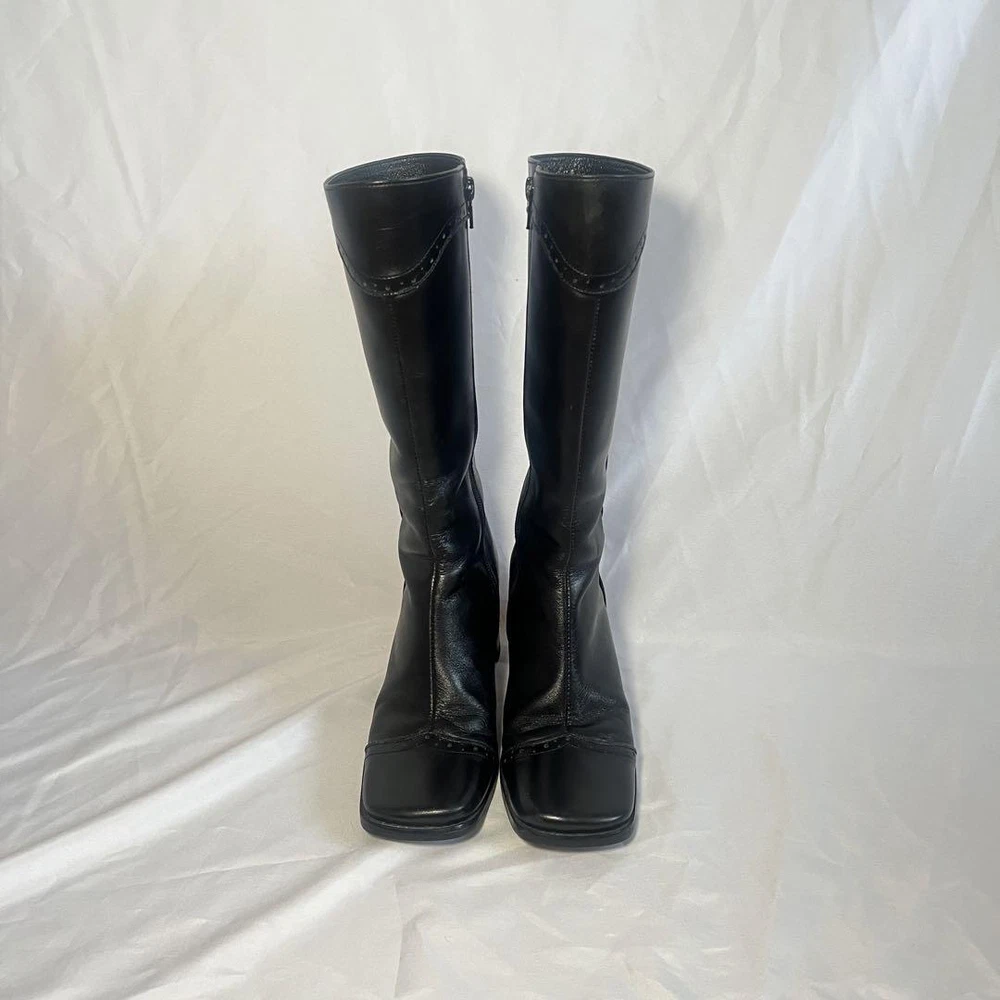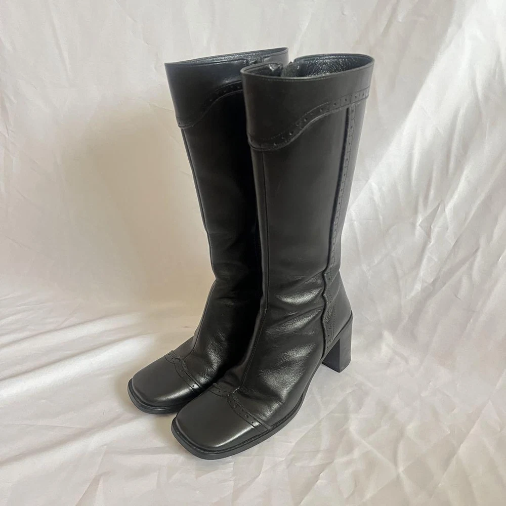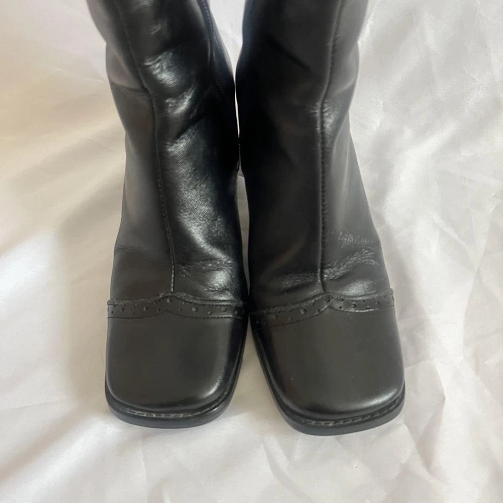 Y2K Long Boots Western Boots Black US:6 Square Toe Wing Tip 2.76” Heel