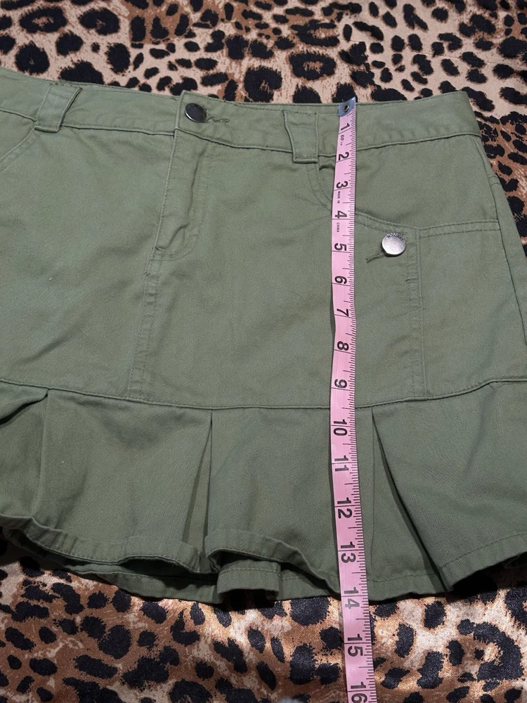 Country of Origin:ChinaAccents:PleatedSize Type:JuniorsClosure:ButtonStyle:MiniSeason:Spring, SummerType:SkirtVintage:YesBrand:MossimoSize:9Color:GreenSkirt Length:ShortDepartment:Women
