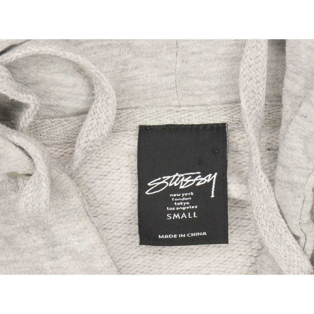 Y2K Stussy Designs Roots Reggae Surf Rydim For Jah Irie Feeling Skateboard Heathered Gray Hoodie Sweatshirt S material: 80% cotton 20% polyester made in China color: heathered gray condition: small hole and a stain on one of the sleeves, the print has cracks, moderate amount of wear size on tag: S mannequin is 6' 2" and a size medium length (from the front on either side of the collar down to the bottom edge): 25 armpit to armpit: 20 shoulder: 19.5 sleeve length: 22 all measurements are in inches and taken with the garment laying flat any major defect will be mentioned and/or photographed 16106 6j8g6 7g5d2