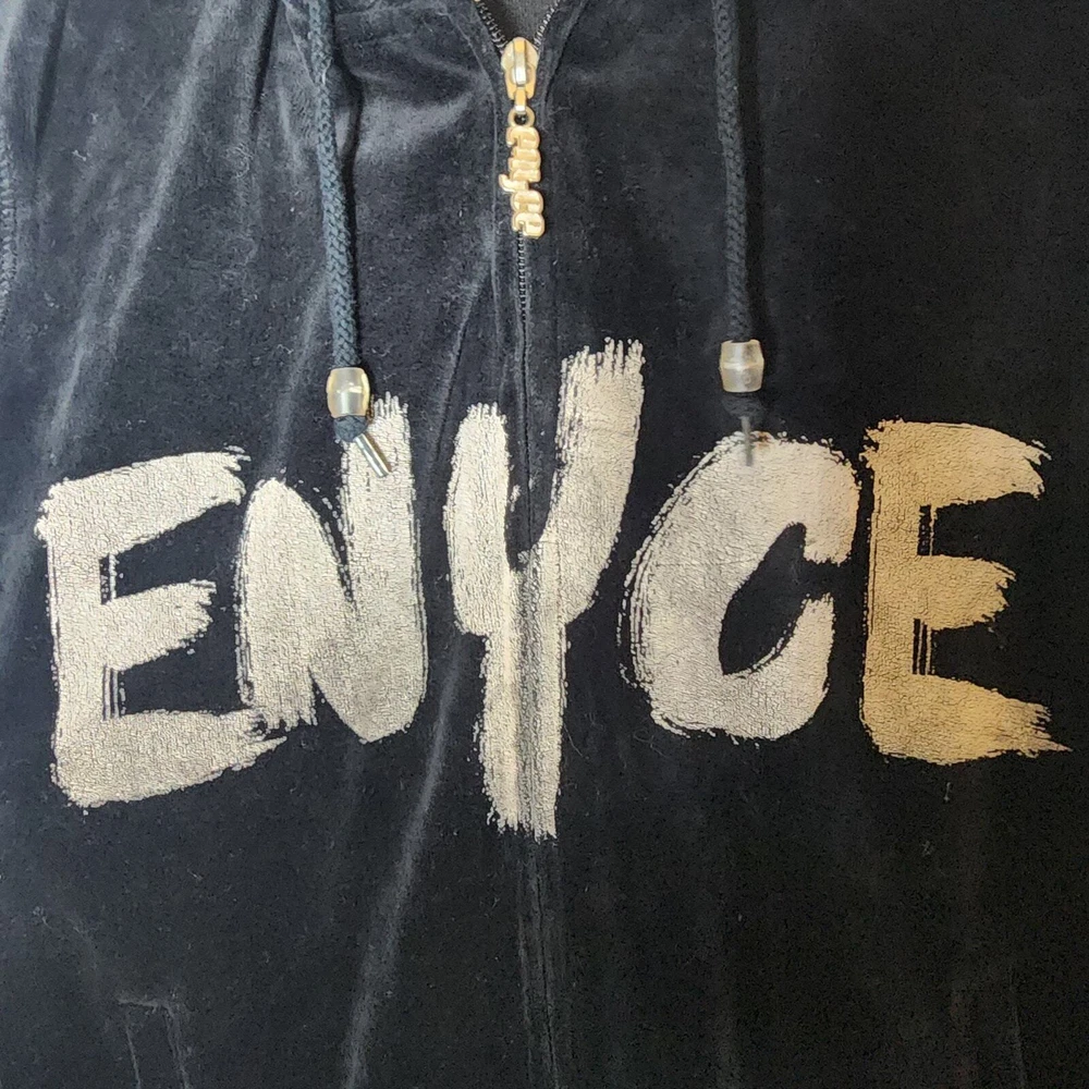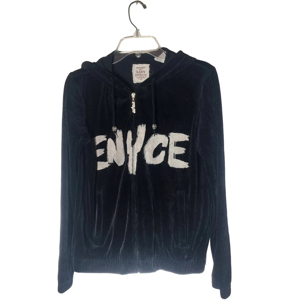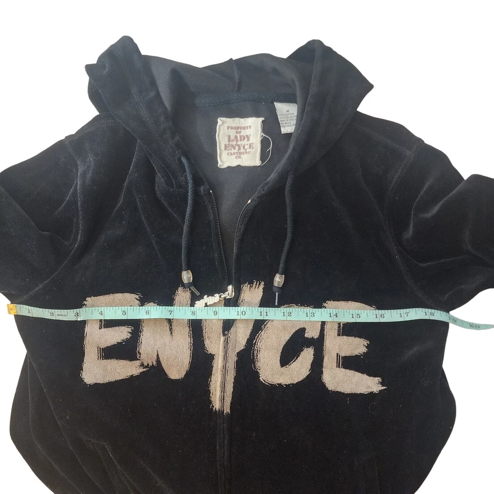 Y2K Sz M Lady Enyce Black Silver Velous Zip Front Hoodie Jacket Streetwear, measurements in photos, great Pre-owned condition. Tags: Y2K, Vintage, Streetwear, School