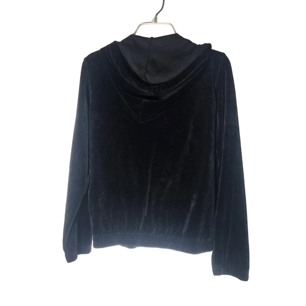 Y2K Sz M Lady Enyce Black Silver Velous Zip Front Hoodie Jacket Streetwear