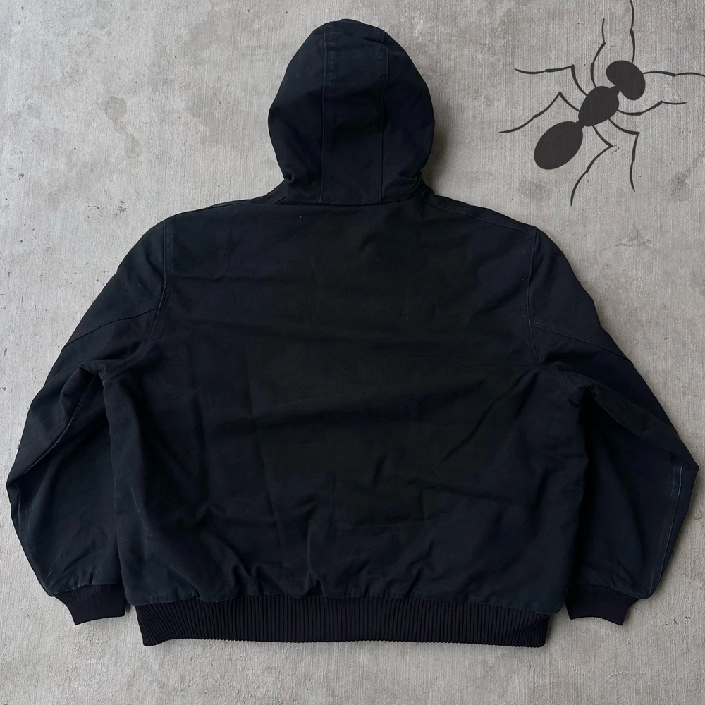 Vintage Y2K Carhartt black hooded work wear jacket. Nice one. Measures 31x30.5. Please check measurements before purchasing. I do my best to show any flaws in pictures. Quick shipping! Bundles encouraged! @ants_haul on Instagram. J0149!!!