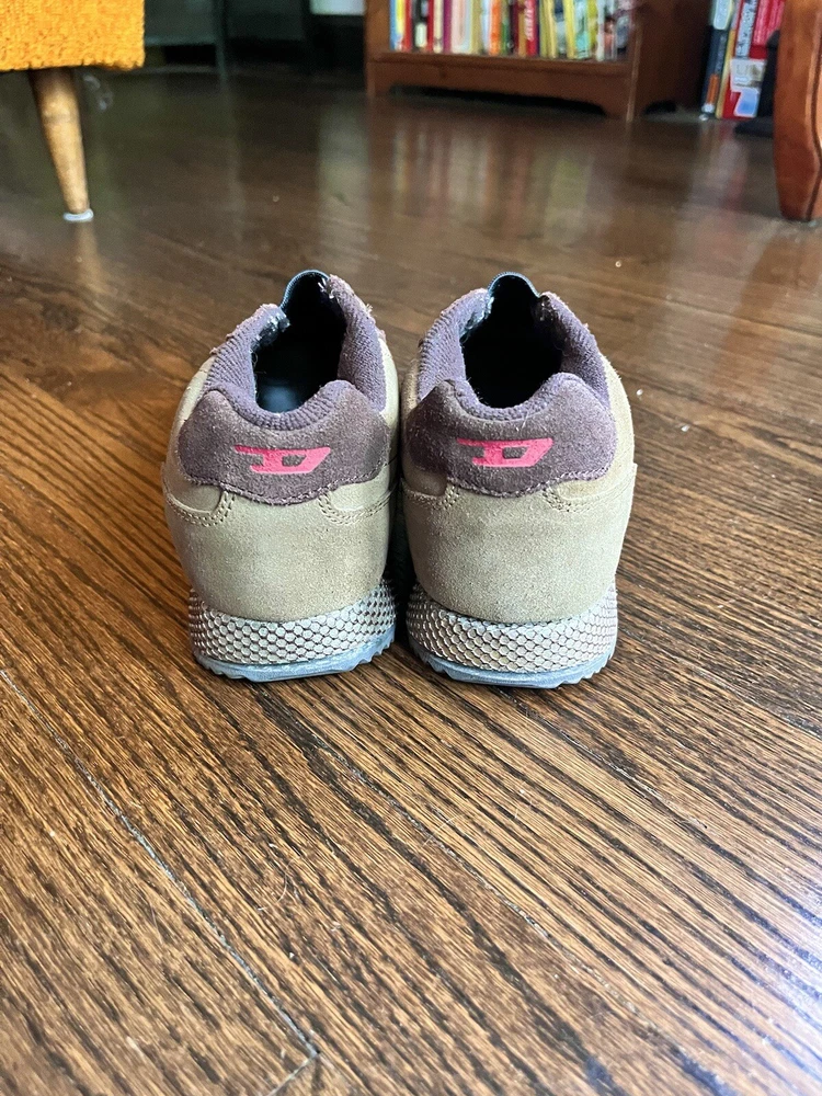 Y2K vintage Diesel chunky faux suede sneakers. Fits a women’s 7.5 true to size. Has some piling inside the shoe near the heel but this doesn’t affect wear at all! Super cute y2k gorpcore kind of vibe~