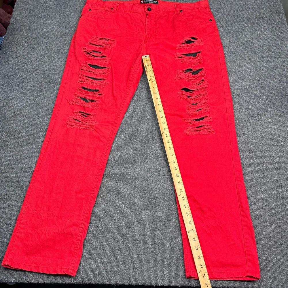 Love these Y2K jeans! The bold red distressed look is so nostalgic and stylish—perfect for a hip-hop or streetwear vibe. They’re super comfortable with that baggy fit, and the cotton blend feels durable. Minor wear just adds to the vintage charm. Shipping was fast, and the seller provided clear photos to check condition. Great quality for the price!