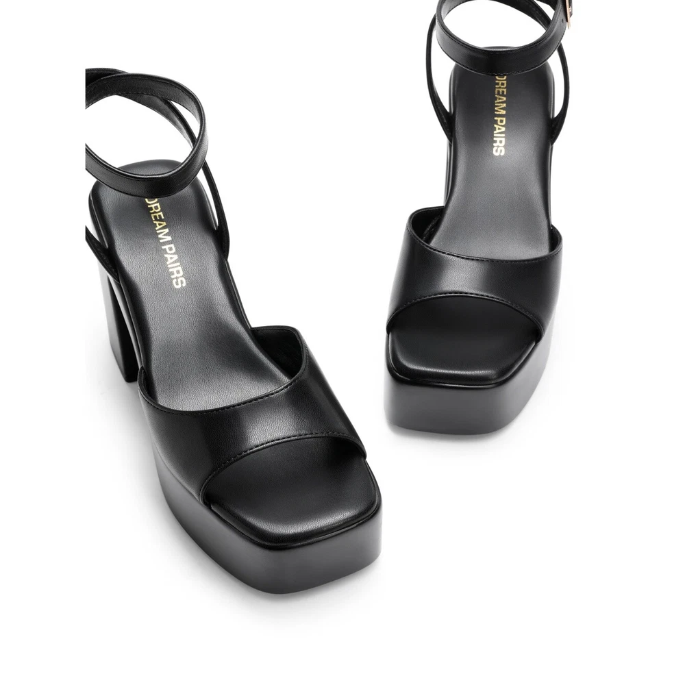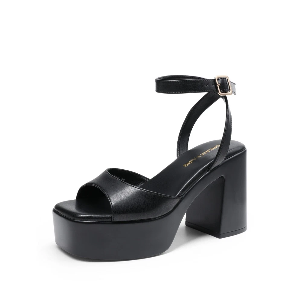 Heel Height: High (3-3.9 in) Upper Material: Faux Leather Closure: Buckle Season: Fall, Spring, Summer, Winter Type: Sandal Features: Comfort, Ankle Strap Brand: Dream Pairs Outsole Material: Rubber Style: Slingback Department: Women Heel Style: Block Occasion: Party/Cocktail, Wedding US Shoe Size: 6-11