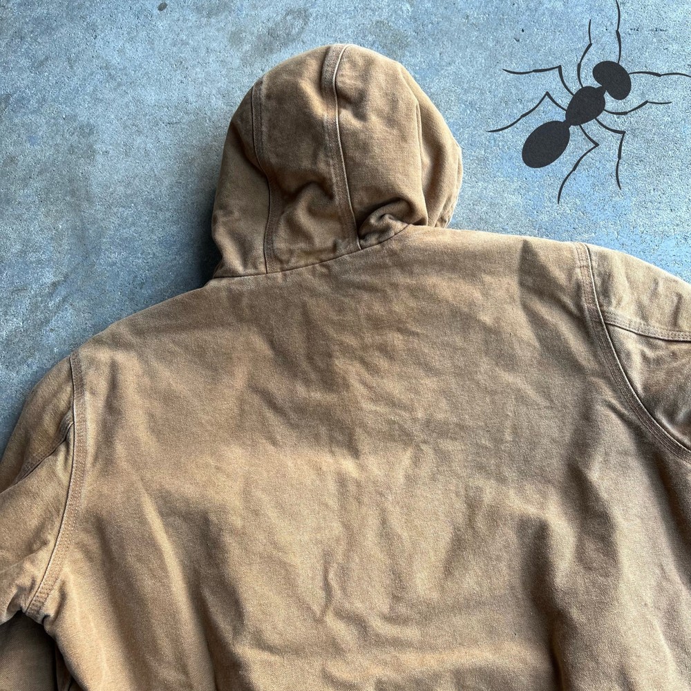Y2K brown carhartt hooded work wear jacket. Has some marks throughout most notably on the sleeves. Measures 26x29.5. Please check measurements before purchasing. I do my best to show any flaws in pictures. Quick shipping! Bundles encouraged! @ants_haul on Instagram.