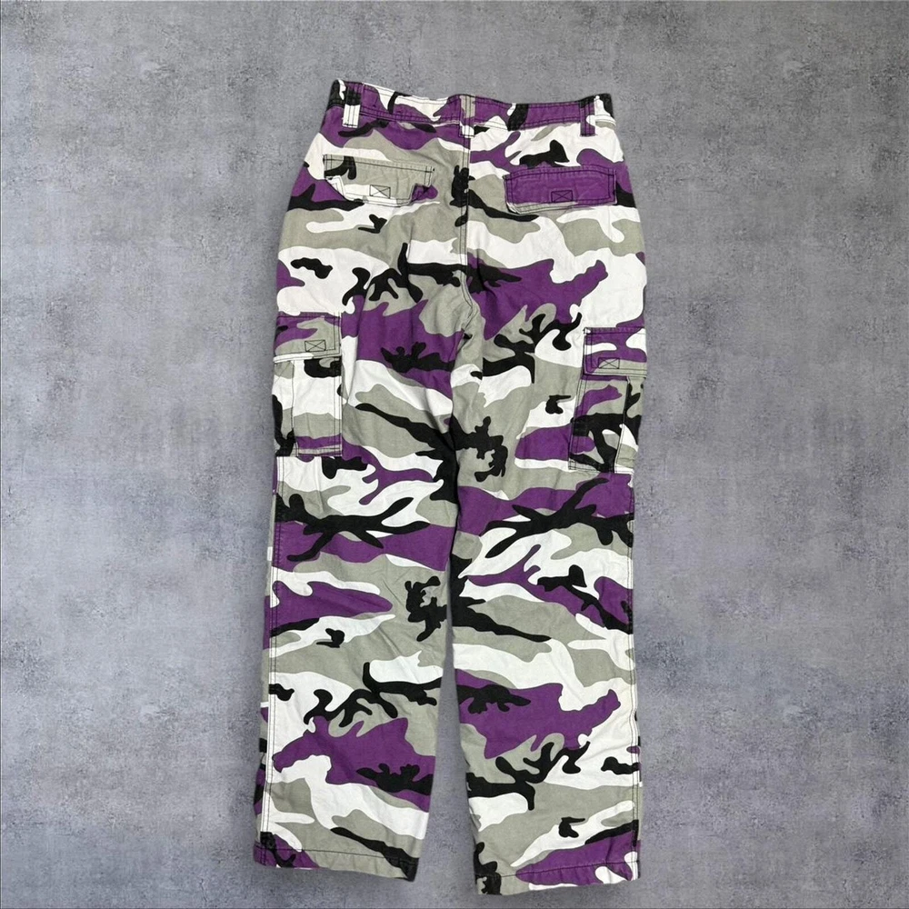 Y2K purple camo cargo pants fleece lined 32x32 essentials Ravens Shipping $7