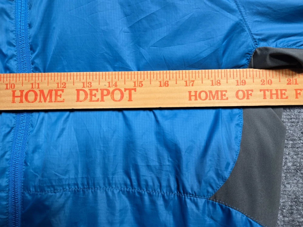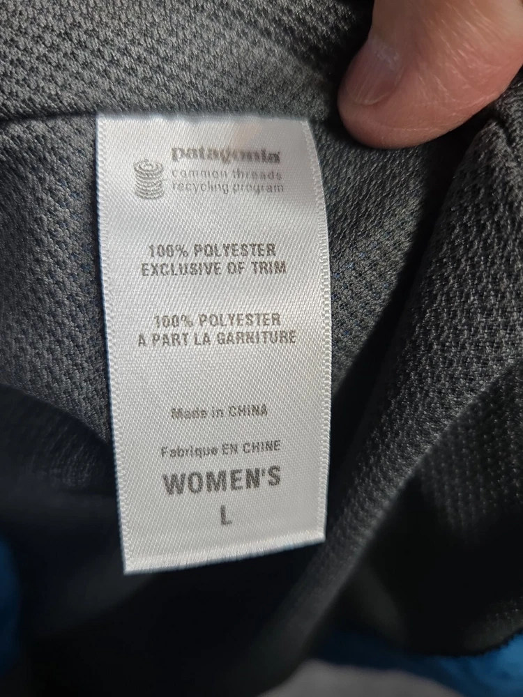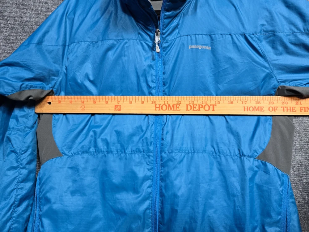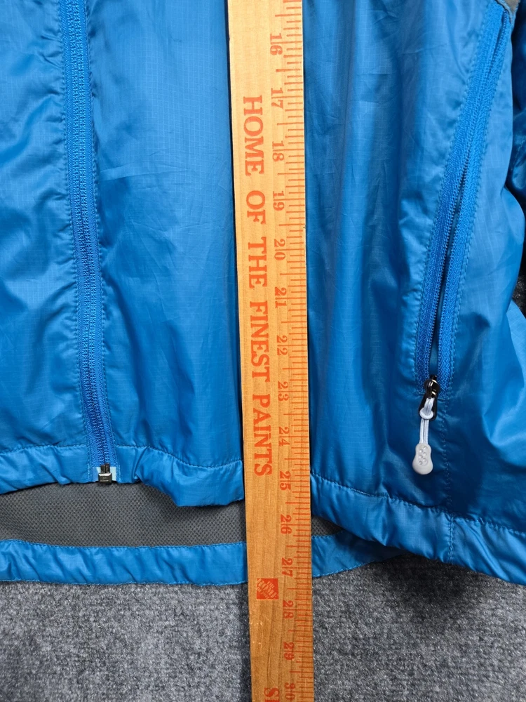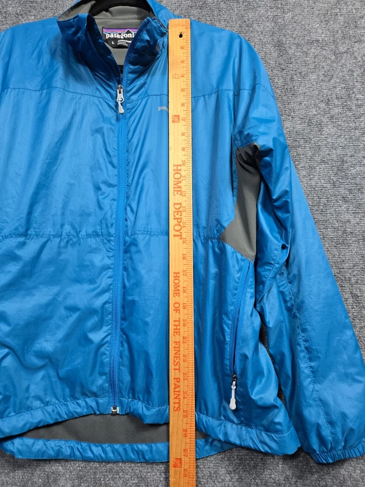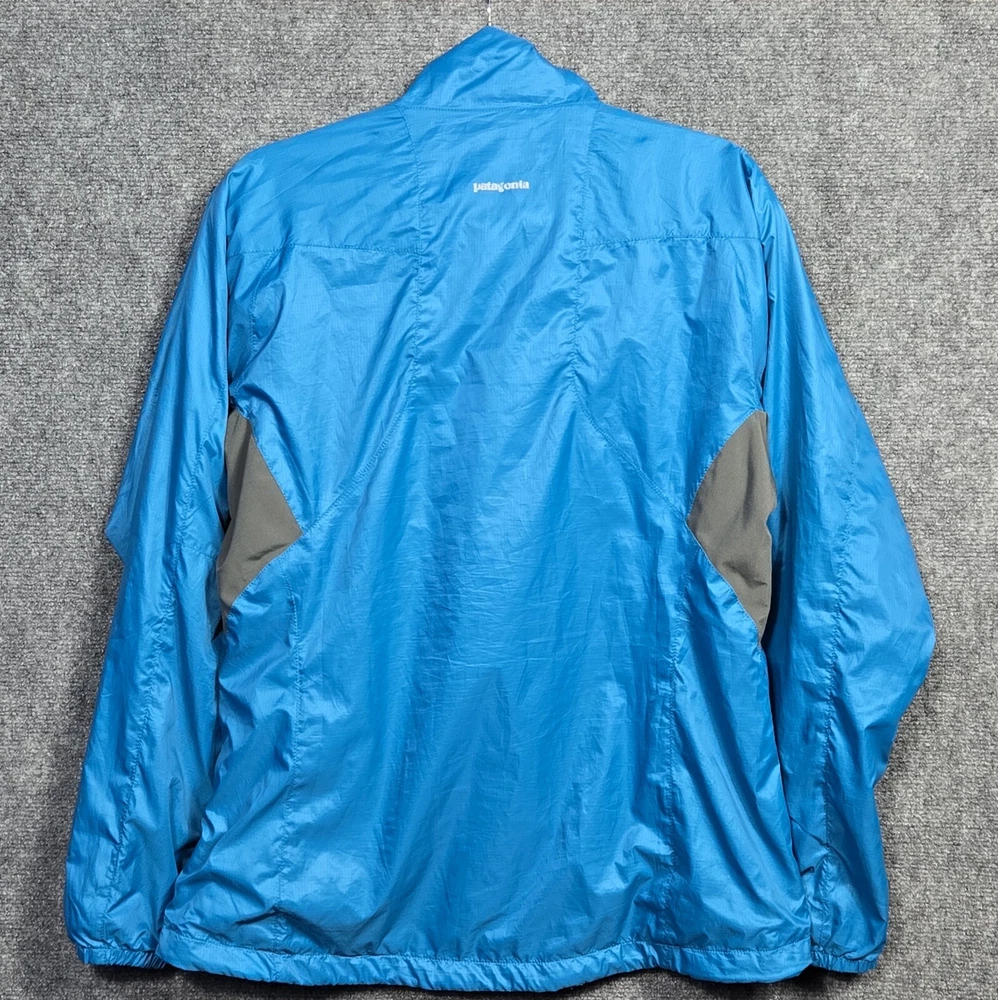 This Y2K windbreaker jacket from Patagonia is a must-have for any hiking or outdoor adventure. Made from durable polyester, this blue with gray jacket features a full zip design for easy wear and a comfortable fit for women in size L. The jacket is perfect for those looking for a stylish and practical piece of clothing that can withstand the elements. With its windbreaker style, it is perfect for any outdoor activity, whether it's hiking, camping, or simply enjoying a picnic in the park.