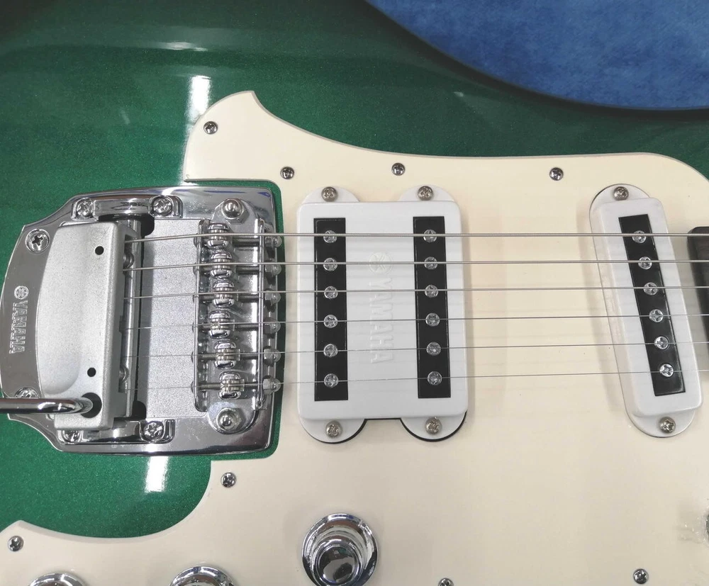 Series: Epiphone Les Paul Number of Frets: NA Neck Material: NA UPC: Does not apply MPN: NA Handedness: Right-Handed Body Color: Green gtin13: Does not apply Set Includes: NA Type: Electric Guitar Body Material: NA Performance Level: NA Personalization Instructions: N/A Model: YAMAHA SGV300 Brand: Yamaha Size: NA Model Year: NA Fretboard Material: NA Seller Notes: “Crack repair near strap pin, no case included.” Personalize: No Country/Region of Manufacture: Japan Body Type: Solid String Configuration: 6 String