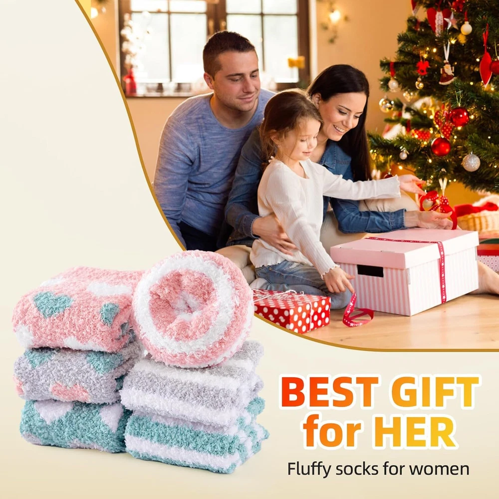 YANGTE Fluffy Socks Womens 4-7,6 Pairs Ladies Bed Socks Cosy Fuzzy Diabetic Brand YANGTE Package Dimensions 29.1 x 22.9 x 3.4 cm; 270 g Manufacturer YANGTE Item model number Fluffy Socks Womens 4-7 Features Cozy and Fluffy - These fluffy socks for women are designed to provide the ultimate comfort and warmth. Made from soft and plush materials, they offer a cozy and snuggly feel to your feet. Slip into these socks and indulge in their fluffy texture, making them perfect for lounging around the house or keeping your feet warm during the winter nights. Adorable Design - These women's bed socks come in a set of six pairs, featuring three main color tones: Pink, green, and grey. Each color set includes a pair of socks with cute heart patterns and a pair with charming stripes. The combination of these adorable designs adds a playful and lovable touch to your sock collection, making them a delightful addition to your winter wardrobe. Winter Warmth - With their excellent insulation properties, these winter warm socks offer excellent heat retention, keeping your feet cozy and snug. Whether you're curled up on the couch, reading a book, or enjoying a cup of hot cocoa, these socks will provide the warmth you need to combat the cold. They are a perfect companion for chilly winter evenings and make great christmas gifts for women, including moms. Diabetic-Friendly - These ladies' fluffy socks are also suitable for individuals with diabetes or sensitive feet. They provide a gentle and non-restrictive fit, ensuring maximum comfort without compromising circulation. The soft and cushioned fabric of these diabetic socks helps to protect sensitive feet and keep them warm during colder seasons. Thoughtful Gift Option - These fluffy socks make wonderful christmas gifts for women and moms. The combination of cute designs, cozy materials, and diabetic-friendly features makes them a thoughtful and practical gift choice. Surprise your loved ones with these adorable and warm socks, offering them comfort and joy during the holiday season and beyond. Our Business 100% Customer Satisfaction We go above and beyond to ensure you receive the best level of service. Returns We want you to be happy with your purchase, however in the rare occasion that you are not, please let us know and we will contact you to arrange either a collection or a refund. Please CONTACT US before leaving any negative feedback and we will promptly sort out any issue with your order. 6135427