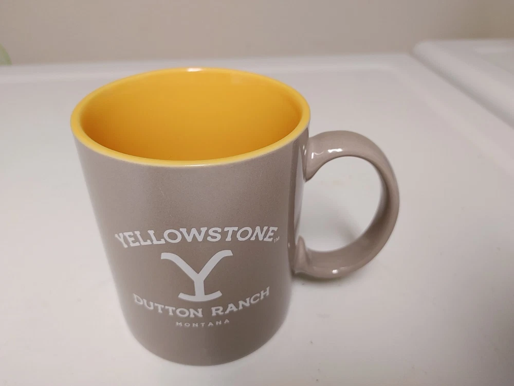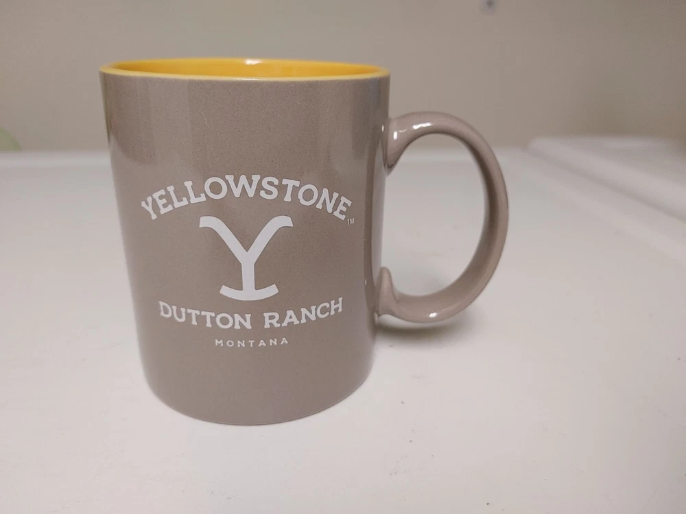 YELLOWSTONE Ceramic COFFEE MUG. 12 oz. Gray /Yellow. "Y" Dutton Ranch. New