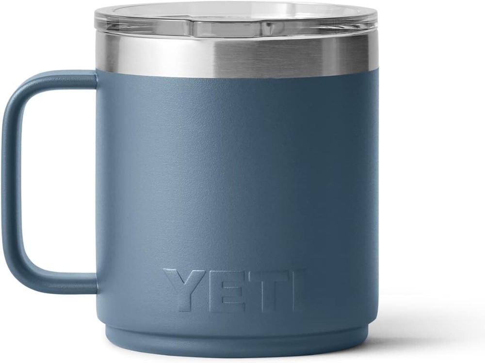 Personalize:NoBrand:YetiColor:NavyMPN:40214010Beverage Type:Hot or ColdFeatures:With LidKeeps Hot For:4 hrsCapacity:10 ozTheme:Food & DrinkItem Weight:2 lbLid Type:Slide LockKeeps Cold For:4 hrsNumber of Items in Set:Two-PieceCare Instructions:Machine WashablePattern:Solid ColorCharacter Family:SportsType:MugMaterial:Stainless SteelSeller Notes:“looks new, unused. Comes without inserts and stickers.”Model:YETI Rambler StackableCountry/Region of Manufacture:China