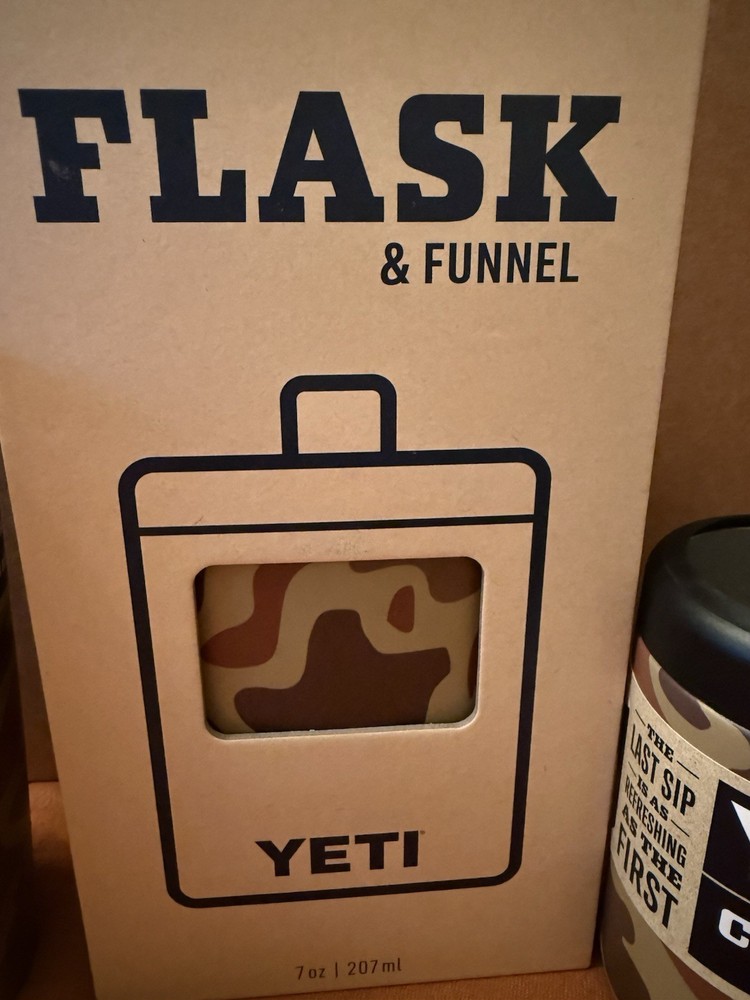 BRAND NEW YETI Wetlands Camo bundle *7oz flask and funnel *20 oz Rambler Tumbler *Rambler COLSTER LIMITED EDITION!! About to disappear in stores AND website!! Smoke free home