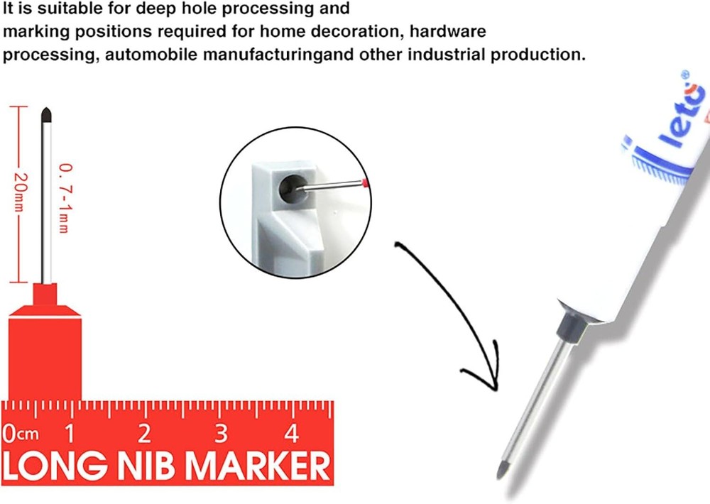 Free eBay listing template designed by dewiso.com YIKANGHENG Deep Hole Marker Pens, 15 Pcs Black 20mm Long Hole Fluent Pens for Engineer and Woodworking Hardware Decoration (Black) FREE AND FAST SHIPPING! About this item Color: black ink Size: 5.5 inch length, pen mounth length is 20mm Quantity: 15 pcs Application: long hole fluent pens for engineer and woodworking hardware decoration Product We offer a 30-Day Return Policy on items which you are not completely satisfied with. You have the option for a full-refund or an exchange of the item. No returns are available on items shipped outside of the US . Shipping We offer Free Shipping to the US and ship within 2 business days of payment, usually sooner. We use UPS express shipping. That's why your products are usually delivered within 3 days . Contact We try our very best to make sure every customer is completely satisfied. If there's a problem , message us! We're happy to help. 24/7 live chat available.