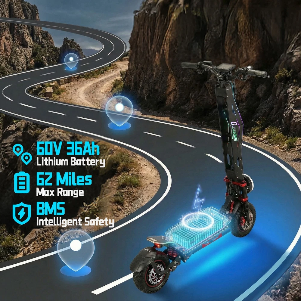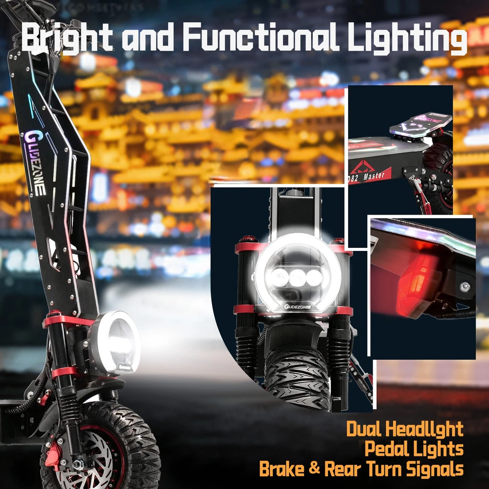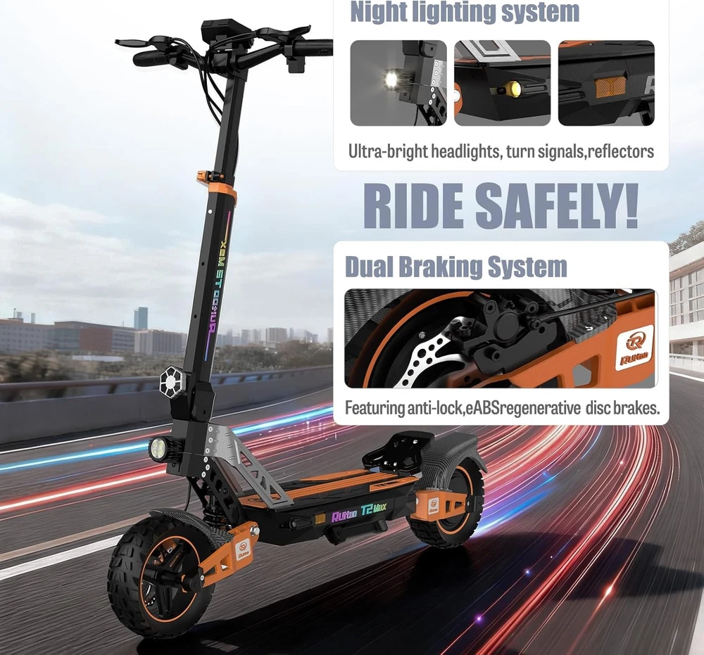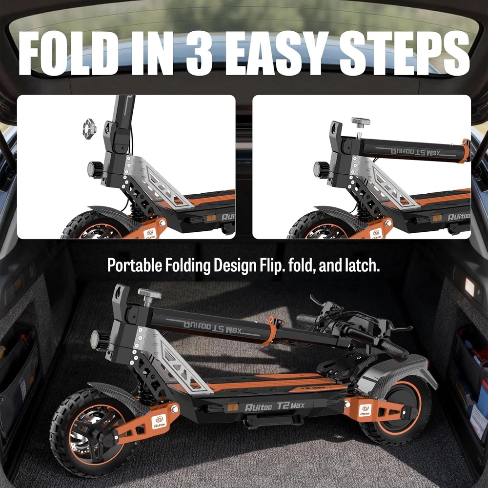 Please note: There are 2 electric scooter models available: Option 1 – GD82 7000W dual motors, 55MPH max speed, 62 miles max range, 60V/36AH battery, 330lbs max load. Equipped with NFC unlock and cruise control. Option 2 – T2 Max 1000W single motor, 28MPH max speed, 34 miles max range, 48V/15.6AH battery, 264lbs max load. Option 1 – GD82 pictures: Option 2 – T2 Max pictures: Free gift kid scooter features pictures: