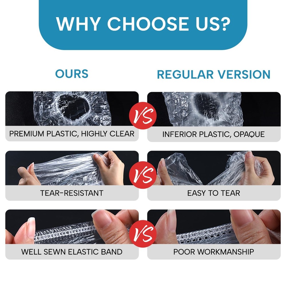 YIZIJIZI 30PCS Disposable Shower Caps, Large Thick Clear Waterproof Shower Cap for Women, large Size 20.5", Home Use, Spa, Hotel and Hair Salon, Clear Shower Caps for Travel VACUUM PACKING: With A Total of 30 Pieces, which are easy to carry and tightly sealed to provide you with a cleaner shower cap. PROCESS DETAILS: The high-quality larger and thicker plastic shower cap, double-head lock, not easy to tear, no impurities, no odor, waterproof, oil-proof, dust-proof and don't easy to leak. EXECELLENT ELASTICITY: Double-layer rubber band reinforcement, good elasticity, can be stretched to 20.5 inches, thickened by 50% (single weight of 0.11 ounces) thicker than normal, and excellent wrapping. The most suitable size, suitable for most men, women and children with short and long hair. VERSATILE USE: Makes a great gift for anyone, in addition to hair salons and showers, it can also be used for home shoe covers, hat covers, shoe covers, wet bags, camera covers, travel bags for shoes, etc. SATISFACTION GUARANTEED: We're confident you'll love our disposable plastic hair caps, let customer satisfaction is what we have been insisting on. Please feel free to contact us if the product has any quality problems. Why choose YIZIJIZI shower cap? Because our service purpose is to provide customers with the most cost-effective products. Specifications: Size: 20.5inch Weight: 3.3 ounces Quantity:30 pcs Packaging: Individually packed Uses: shower, hairdressing and beauty, household dust cover, food service, hotel, hospital, laboratory, camping and travel Shipping We offer FREE shipping on all orders! We ship within Three business days of payment, usually sooner. We use a selection of shipping services such as UPS, FedEx, USPS etc. We only ship to the lower 48 states, no APO/FPO addresses or PO Boxes allowed. Local pickups and combined shipping options are not provided at this time. Return You can return a product for up to 30 days from the date you purchased it. Any product you return must be in the same condition you received it and in the original packaging. Please keep the receipt. Payment We accept payment by any of the following methods: PayPal Please pay as soon as possible after winning an auction, as that will allow us to post your item to you sooner! Feedback Customer satisfaction is very important to us. If you have any problem with your order, please contact us and we will do our best to make you satisfied. Contact Us If you have any queries, please contact us via ebay. We usually respond within 24 hours on weekdays. Please visit our eBay store to check out other items for sale! Thank you for shopping at our store.