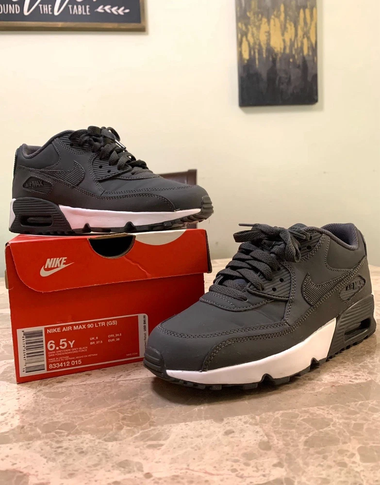 ✨Excellent Condition✨ Market Value: $90 Size: 6.5Y - 8W - 6.5M Color: Dark Grey / Dark Grey-Black / White 👟ICONIC AIR👟 “The Nike Air Max 90 LTR returns with an even better feel for you. Cushioning is softer and more flexible, the Max Air unit is tuned for growing feet and the shape gives your toes more wiggle room. With a design and look that are still the same, it brings a '90s fave to a new generation. - Updated Classic The low-top kicks are made with real and synthetic leather that’s durable and brings a classic feel. The shape gives toes more wiggle room and the fit helps keep growing feet comfortable. - Cushioned Comfort The Max Air unit has a softer feel that's tuned right for kids. Plus, cushy and flexible foam makes for easy steps. - Padded Design Extra padding around the ankle gives a plush feel so you can slip right into comfort. - Natural Moves The full-length rubber sole features grooves for flexibility so every step feels natural.” ✅ Original Box & Shoe Paper Included ✅ Smoke & Pet Free Home 🏡 (Worn One Time Only) ✔️