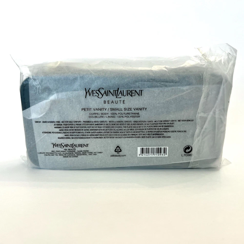 This eBay listing is for 1 pink/black small size vanity from Yves Saint Laurent. The vanity has a mirror inside along with the following: 1 makeup mixing stick 1 YSL tweezer 1 YSL mascara 1 YSL mini lipstick