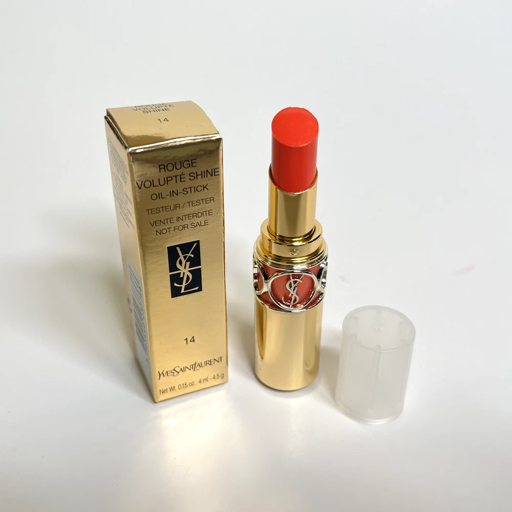This eBay listing is for 1 YSL Rouge Volupté Shine (RVS) Oil-In-Stick lipstick, a brand new tester w/ plastic cap and no box. These have never been sampled or used. This lipstick has a unique formula that locks in moisture for up to 8 hours! Don’t get just one! I have them for very cheap because they all come with plastic caps and no boxes. Many great shades to choose from! PLEASE PICK YOUR SHADES FROM THE DROPDOWN MENU: #4 - Rouge Ballet #5 - Fuchsia Chiffon #14 - Corail Marrakech #15 - Corail Spontini #16 - Orange Majorelle #43 - Rose Rive Gauche #45 - Rouge Tuxedo #79 - Coral Plume #80 - Chili Tunique #81 - Coral Aviator #82 - Orange Crêpe #83 - Rouge Cape #84 - Red Cassandre #85 - Burgundy Love #87 - Rose Afrique #88 - Rose Nu #90 - Plum Tunique #131 - Chili Morocco Thank you so much!