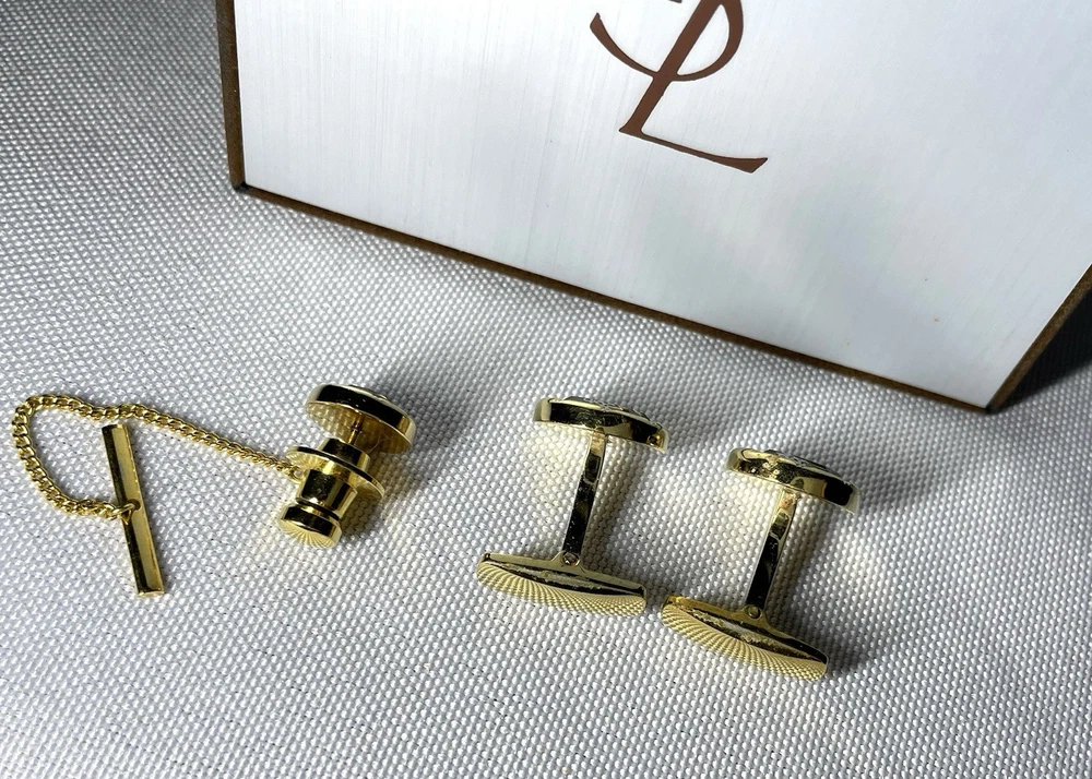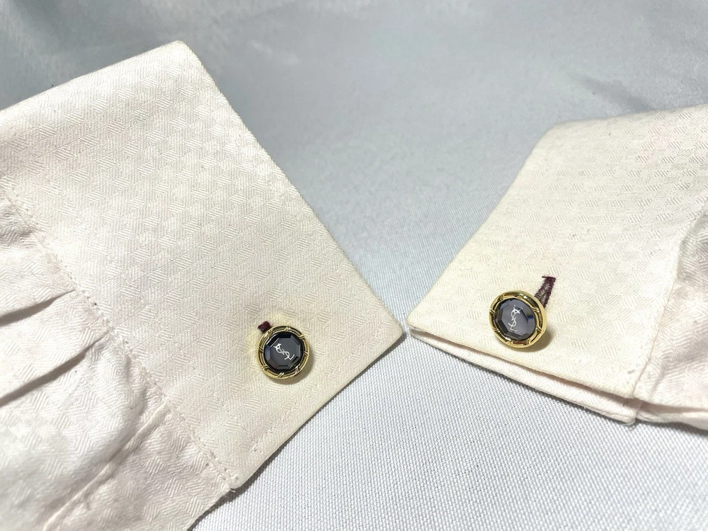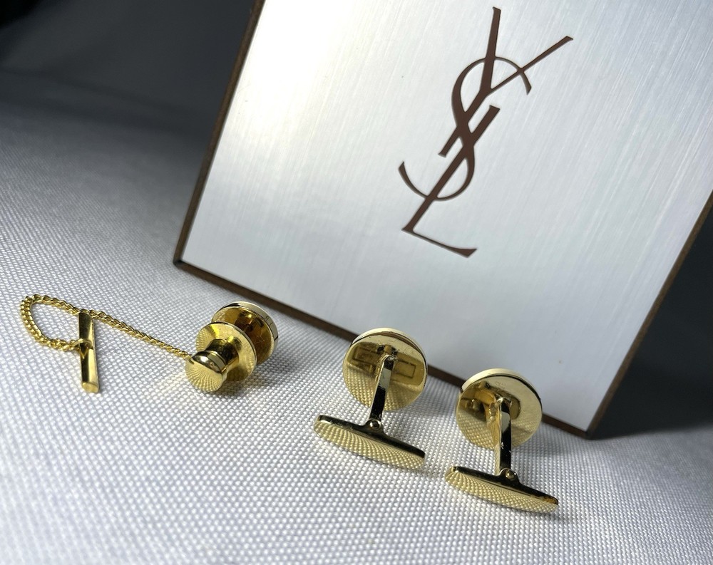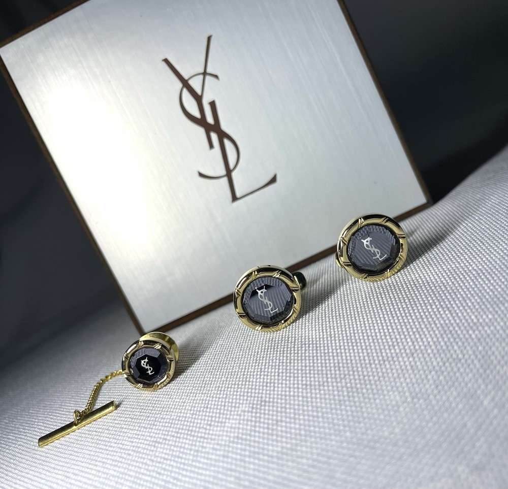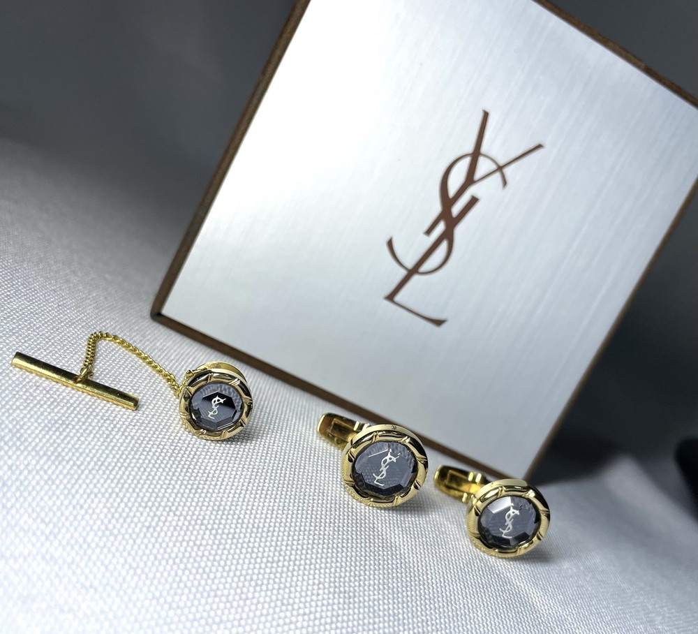Information We cannot offer a significant discount such as half price, but please feel free to send us your best offer. We will consider it as much as possible. It depends on the time of payment. We will ship on the same day or the next day as a general rule. (Shipping may be delayed due to business trips, etc., but in that case, we will contact you by message. This was purchased from a Japanese online store several years ago. Yves Saint Laurent YSL Logo Gold x Clear Black Crystal Cufflinks Titanic Pin Brooch Set This is a rare discontinued vintage model. The two colors, gold metallic and clear black crystal, are eye-catching. Depending on the angle of the light, the YSL logo and clear black crystal shine beautifully, exuding the luxurious aura of a high-end brand. This item alone can elevate your outfit from casual to dressy, making it a magical accent piece for any occasion. Don't miss out on this opportunity! Shipping Depending on the time of payment,Basically, we ship the same day or the next day. (Sometimes shipping may be delayed due to business trips. In that case, we will contact you via message.) Item Descriptiont Color: gold & Clear Black Crystal Material: unknown Size: Cufflinks About 1.4 cm (0.551 inch) Weight 5g x 2 Titanic About. 1.1cm (0.433inch) Weight 4g Condition: Vintage There is some damage and discoloration on the back due to aging, which is typical of vintage models, but the surface is clean and there is no noticeable damage, loose clips, or chipped stones when worn. The shine is good. Accessories: Genuine case (There is damage inside the genuine case.) Other accessories for Yves Saint Laurent model and We also have a large selection of luxury models such as Hermes, Tiffany & Co, Cartier, Bvlgari, Saint Laurent, Celine, Burberry, Valentino, Philippe Chariol, Montblanc, Dunhill, Versace, Givenchy, Montblanc, etc. I would appreciate it if you could watch it “To ensure that buyers can conduct transactions with peace of mind” We are responsible for all products we sell. Customer feedback excellent seller. Communication went well. Even though I came to America from Japan, I was told that the product would arrive quickly and in time for my specific birthday. High quality products are also available! Highly recommended! ++++++ Great seller! They were very responsive and the product description was accurate. I strongly recommend it! This is a very popular seller and is easy to do business with. The cufflinks were mint quality. I would be happy if you could respond. Oh, and his TKU to the A+++ seller for careful packaging and safe and surprisingly fast delivery of a beautiful PC. Excited by the rich quality look and feel of the metalwork, it looks like new and is perfect in every way. His TKU to the seller was also strong and clear communication from start to finish, which led to a wonderful and positive transaction. We have received many opinions regarding the text above, so please feel free to purchase with confidence. Of course, please rest assured that all of the products we sell are genuine products. We look forward to doing business with you!