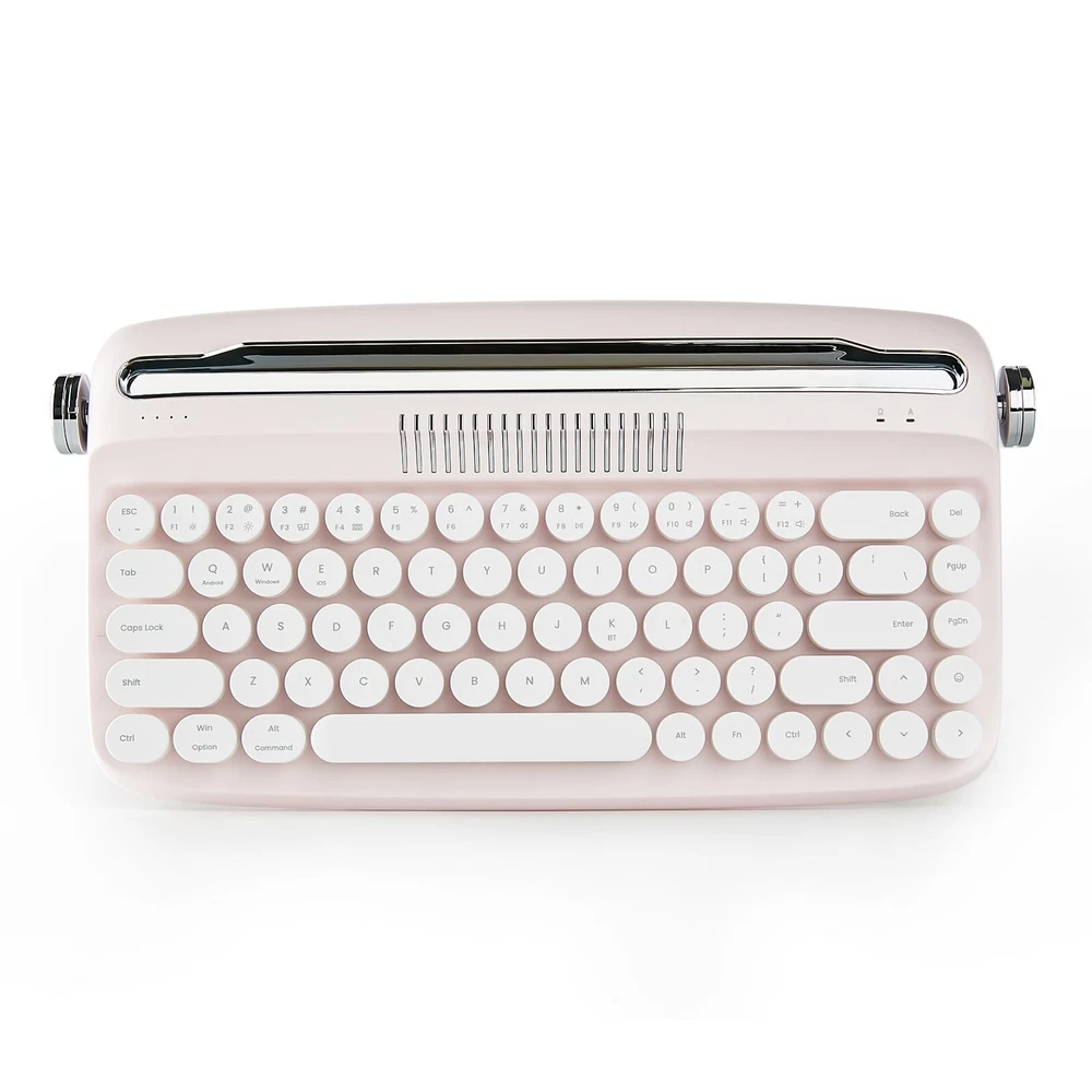 YUNZII Upgraded Wireless Typewriter Keyboard, Retro Aesthetic with Integrated Stand,Cute Round Keycaps, USB-C/Bluetooth Connection for Table, Phone, PC and Win/Mac/Android (B307, Baby Pink) Product Details Size: B307 Style: Baby Pink Brand: YUNZII MPN: B307 UPC: Does not apply EAN: Does not apply Brand: YUNZII Compatible Devices: Laptops, Tablets, Smartphones Connectivity Technology: Bluetooth, USB-C Keyboard Description: Membrane Recommended Uses For Product: Everyday Use Special Feature: Integrated Stand, Rechargeable Color: Pink Number of Keys: 68 Keyboard backlighting color support: Single Color Style: Baby Pink Package Dimensions: 14.65 x 7.64 x 2.48 inches Item Weight: 0.035 ounces Manufacturer: YUNZII Item model number: B307 Batteries: 1 Lithium Ion batteries required. (included) Date First Available: June 13, 2023 WIRELESS RETRO CUTE KEYBOARD:The YUNZII Upgraded wireless retro keyboard adds knob control, rechargeable battery and Bluetooth & wired connections. The colorful keyboard offers a unique blend of vintage charm and modern typewriter functional, with its compact layout, retro keyboard typewriter style, pastel colored keyboard with round keycaps. Bringing a more enjoyable typing experience with this aesthetic keyboard. BLUETOOTH AND WIRED CONNECTIVITY: The cordless keyboard features the latest Bluetooth 5.0 technology and stable wired connection. The wireless compact keyboard built in a rechargeable battery and come with a keyboard cable for wired connection and charging. VINTAGE TYPEWRITER KEYBOARD WITH INTEGRATED STAND: The wireless typewriter keyboard includes an integrated stand holder for pad, phone and tablet, which matches the vintage aesthetic of your desk and home office. The retro keyboard also includes adjustable feet, allowing you to set the angle for maximum comfort during long typing sessions. The built-in tablet or phone holder is 11.6x0.5 inches that can fit most pads. 68-KEY MINI TYPEWRITER KEYBOARD WITH KNOB CONTROL: Despite its compact size, the B307 membrane keyboards features 68 keys and all the functionality typer need for efficient typing. 2 knobs are functional. Turn the knob on the left to change the connection channel. Turn the knob on the right to change the volume. This functional and compact design make the keyboard an ideal choice for desk accessories & workspace organizers. MULTI-DEVICE WIRELESS KEYBOARD FOR MULTI OS: The wireless rechargeable keyboard connect via Bluetooth and USB-C wired on Windows, Android or mac iOS systems, Support all kinds of devices including Pad/PC/Laptop/Tablet/Smartphone.The package include a retro wireless keyboard, an extra red keycap, manual.